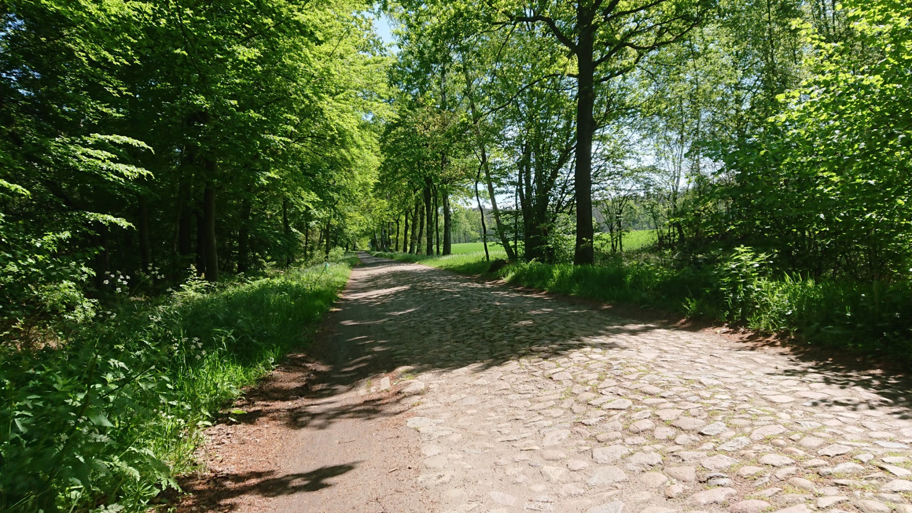 Bis nach Mechtersen sind die Wege gut und wenig befahren und der als “Mühle” beschilderte Radweg ist unser Begleiter. Kurz hinter Mechtersen geht der Weg in eine Schotterstraße über und wir haben mal wieder eine Begegnung mit Reitern. Die beiden Pferde stehen nahezu mittig auf dem Weg und so ist da kein Durchkommen, man weiss ja nicht, wie die Tiere sich dann verhalten. Also halten wir an und warten ab. Für die beiden jungen Reiterinnen ist schnell klar, dass wir Schuld daran sind, dass ihre Pferde mehrfach scheuen und lieber flüchten wollen als an uns vorbeigehen. Leider läßt der Weg keine weiteres Ausweichen zu. Wir sehen die “Schuldfrage” etwas anders. Aber das liegt wohl auch im Auge des Betrachters. Nach gefühlten 10 Minuten sind die beiden Pferde endlich an uns vorbei und wir konnen wieder vom Grünstreifen auf die Schotterpiste wechseln, auf der wir dann weiterfahren, bis die Piste in einen reinen Sandweg übergeht, der auf den nächsten 1-2km anhält und komplett von vielen Pferdehufen auf der ganzen Wegbreite zertrampelt ist. Uns bleibt nur das Schieben der Räder und der Vermerk, diese Strecke ist für uns nicht fahrbar. Einige Reifenspuren deuten darauf hin, dass hier wohl einige Mountainbiker (mit e) durchgefahren sind.