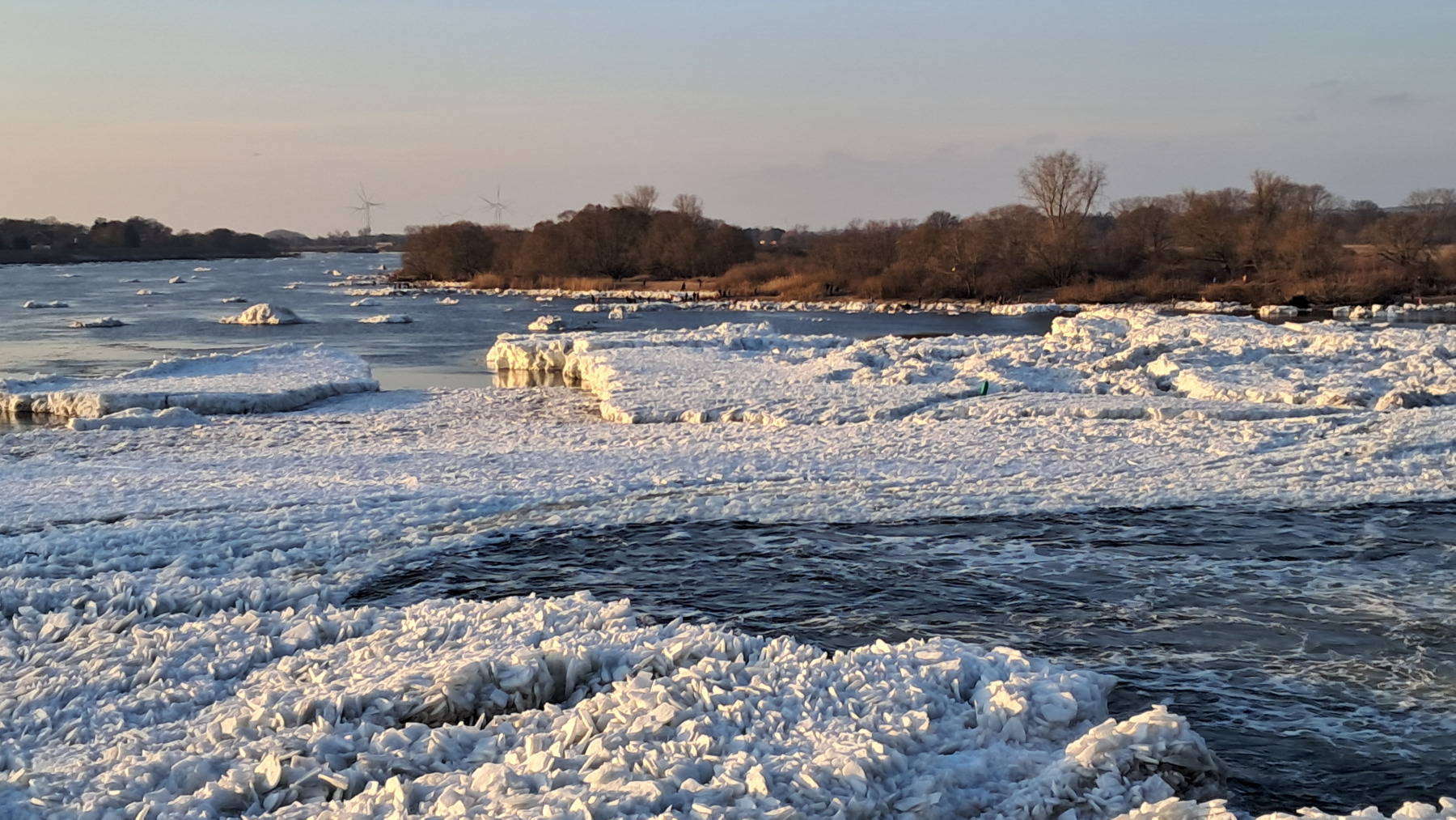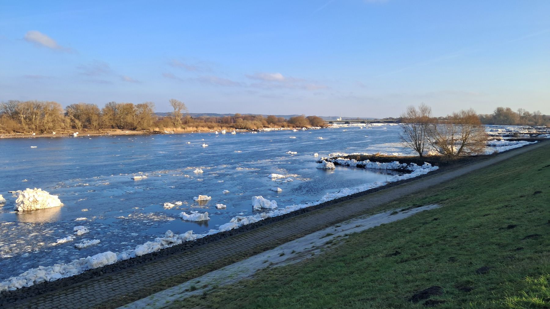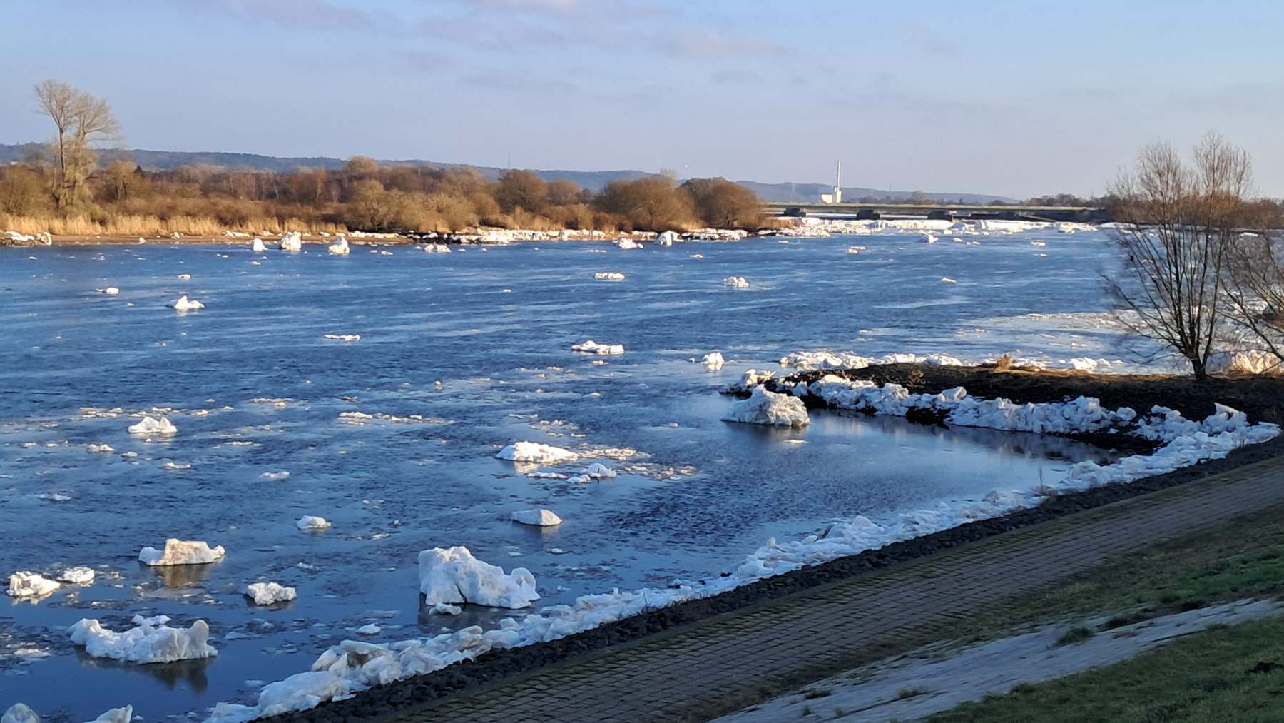 Auch wenn es seit vergangenen Dienstag mit dem Schnee und den tiefen Temperaturen in Norddeutschland vorbei ist, wir waren heute “Eisberge schauen”. Am Wehr der Elbe hatten sich die Schollen zum Teil meterdick über- bzw. untereinander geschoben so dass die Eisbrecher es immer noch nicht geschafft haben, dieses Eis zu brechen.