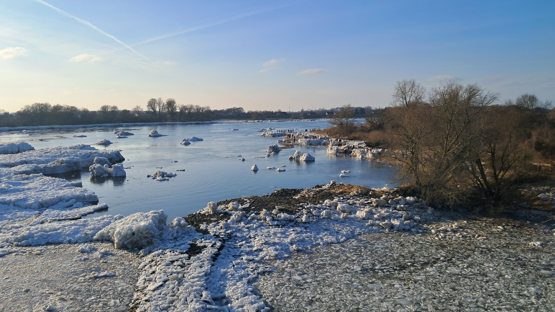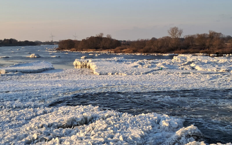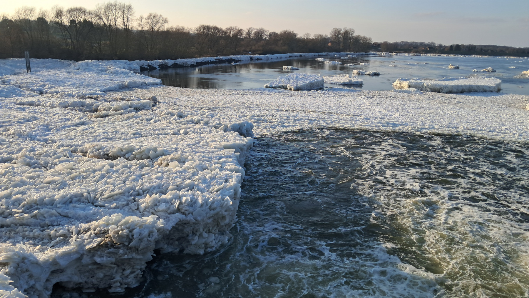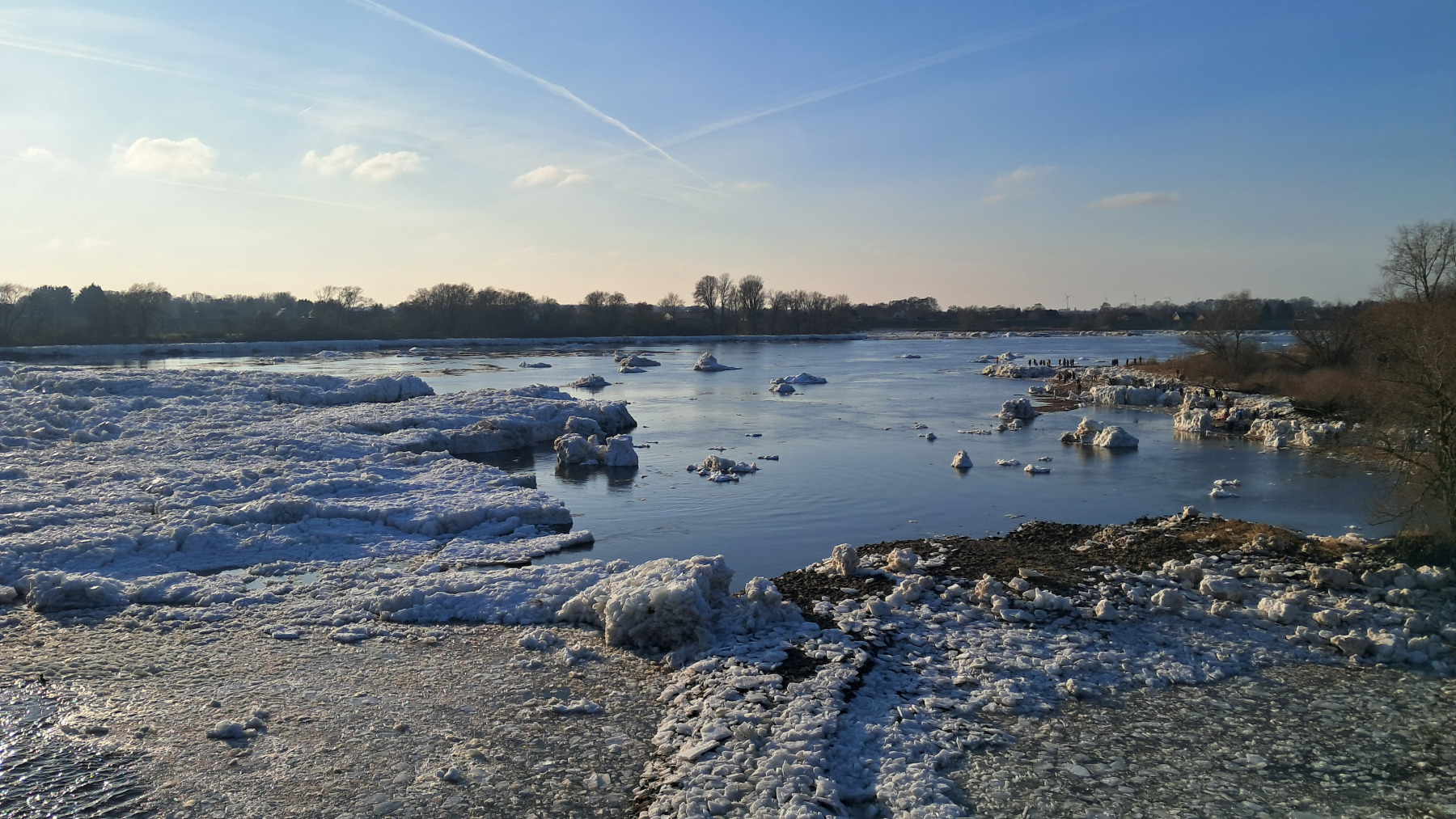 Auch wenn es seit vergangenen Dienstag mit dem Schnee und den tiefen Temperaturen in Norddeutschland vorbei ist, wir waren heute “Eisberge schauen”. Am Wehr der Elbe hatten sich die Schollen zum Teil meterdick über- bzw. untereinander geschoben so dass die Eisbrecher es immer noch nicht geschafft haben, dieses Eis zu brechen.
