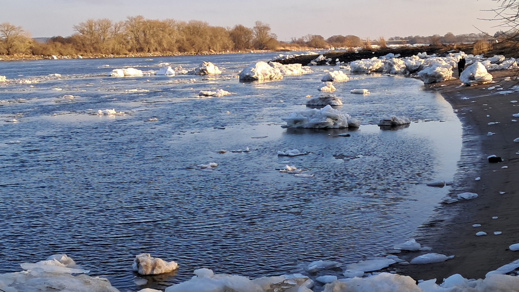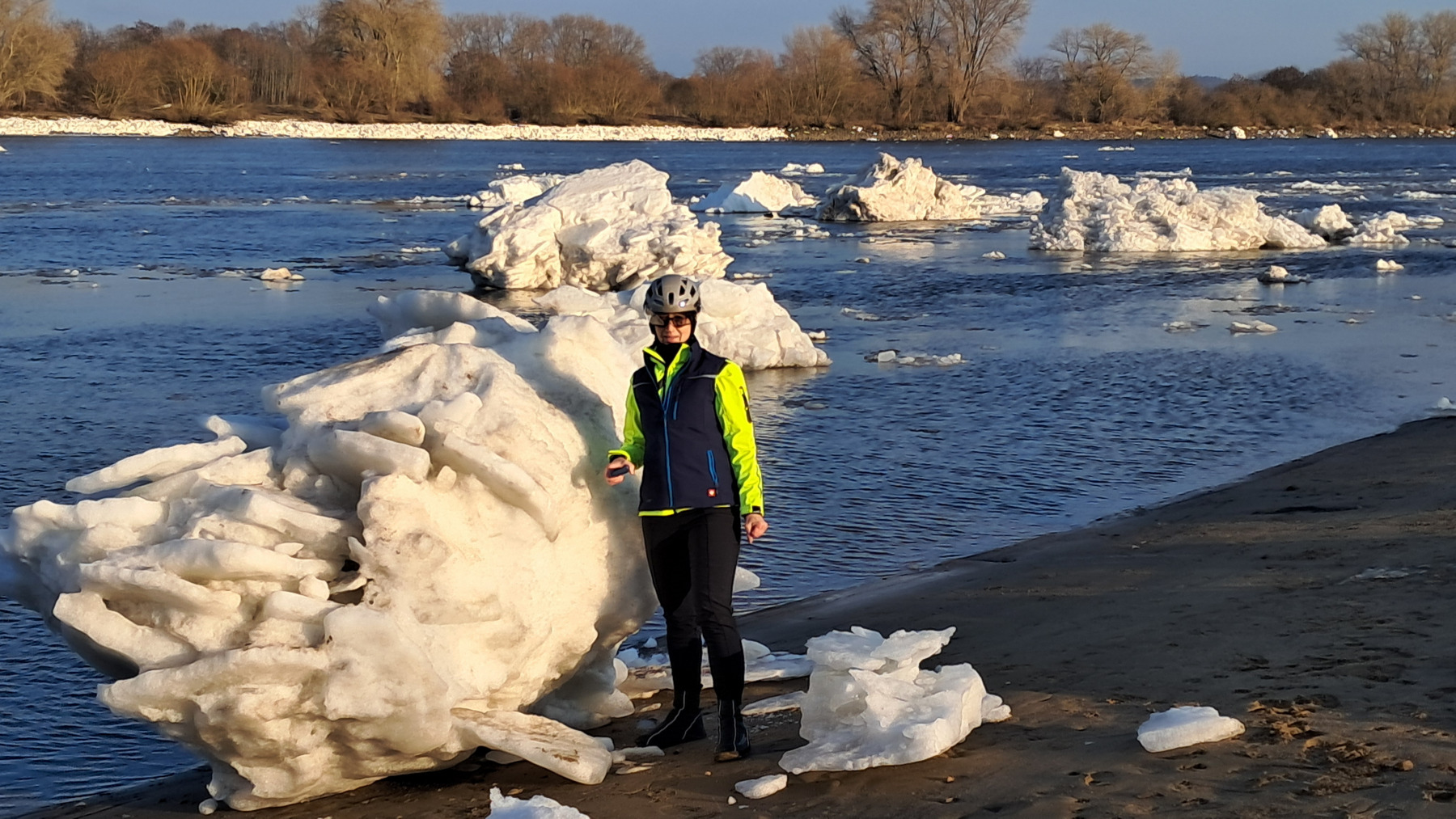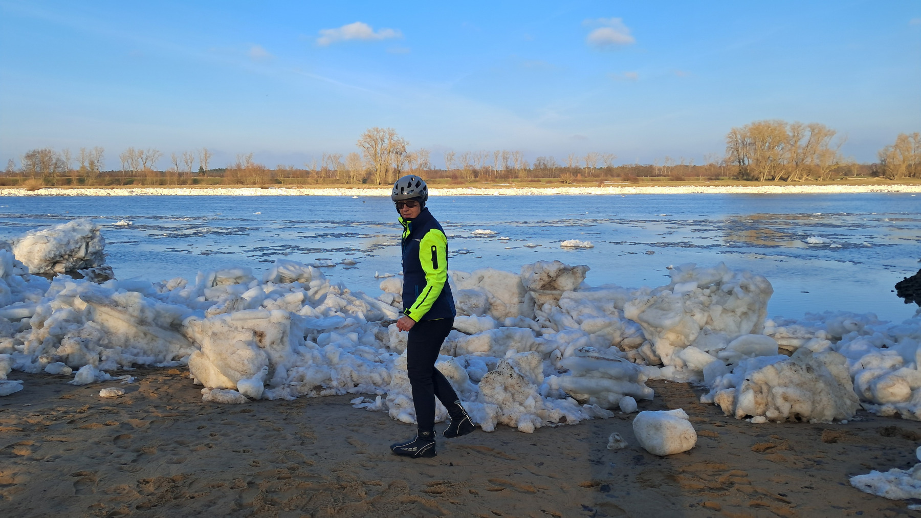 Ein Stück weiter flußabwärts am Stover Strand können wir am Wasser einige der “Eisberge” erreichen