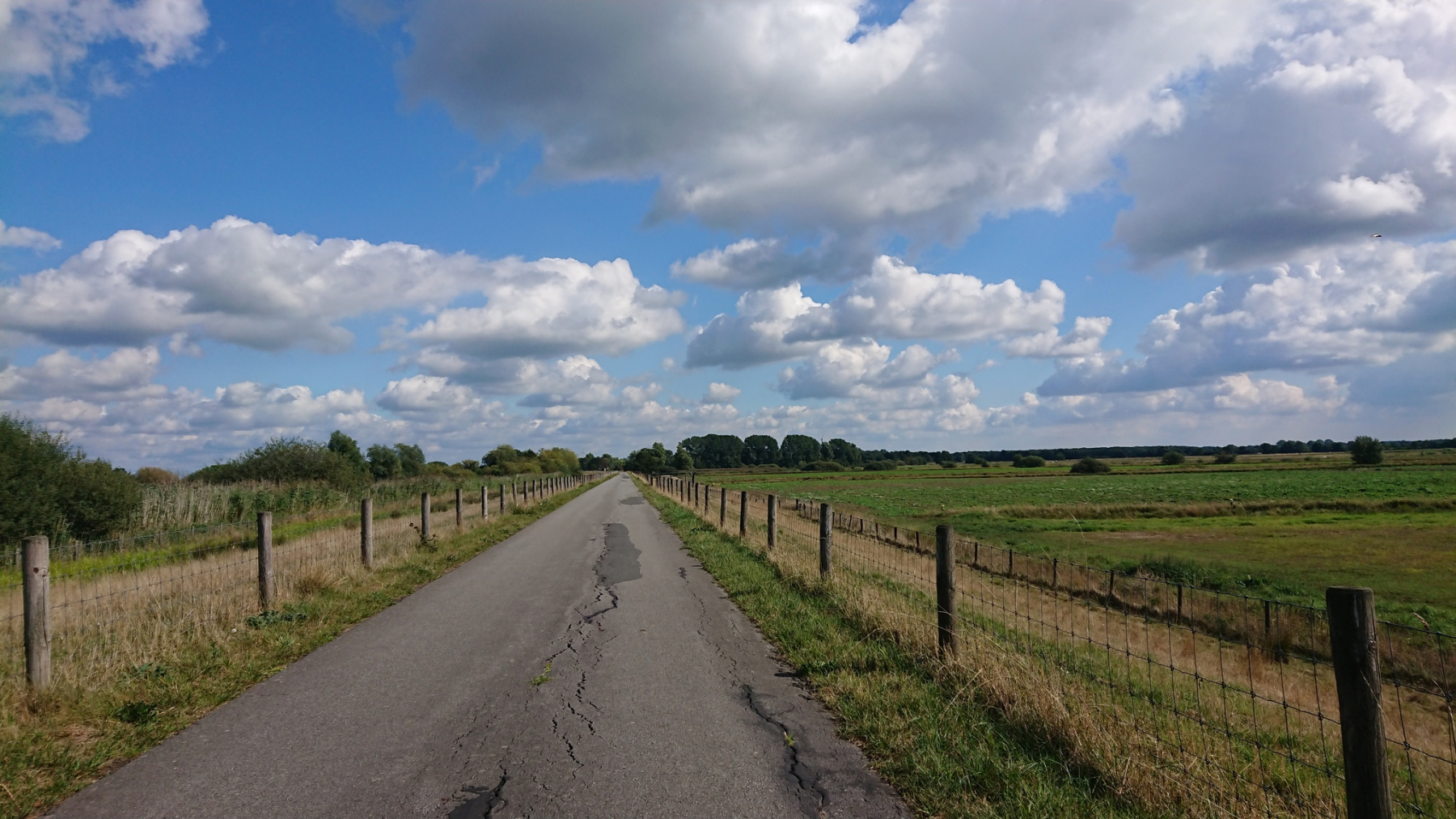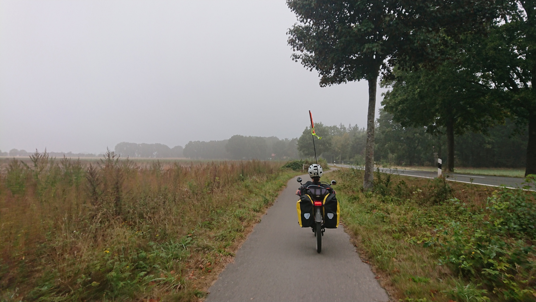 Nach der Pause geht es dann entspannt weiter. Vor uns liegt der Teil der Hunte, den Christof und ich auf unsere Tour nach Amsterdam im Frühjahr in Gegenrichtung gefahren waren. Entspanntes danhingleiten mit leichtem Rückenwind bei strahlend blauem Himmel, den mitlerweile hat sich der Nebel aufgelöst.