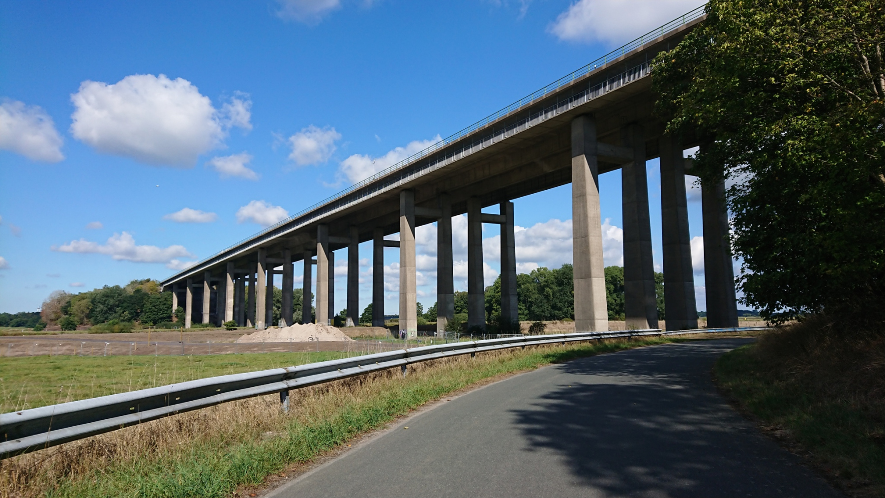 Wir folgen dem Verlauf des Hunteradweges, aber von der Hunte sehen wir nicht viel, erst in Wildeshausen kommen wir erstmalig an die Hunte. Wie gut das die Brücke über die Hunte grade nicht vorhanden ist,