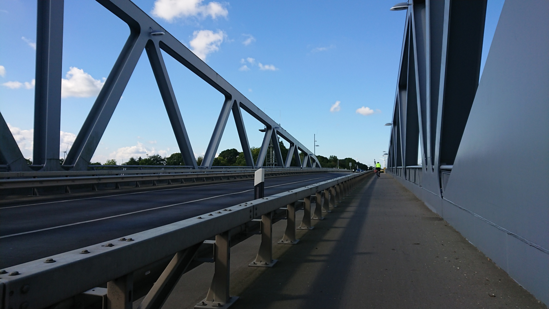 sonst würden wir hier über die Brücke geschickt, um kurz danach wieder über die nächste Brücke zurück auf dieses Ufer zu kommen. Solche Wegführung gibt es im Verlauf des Radweges immer mal wieder und wir können jedesmal entscheiden: Bleiben oder den Schlenker fahren.