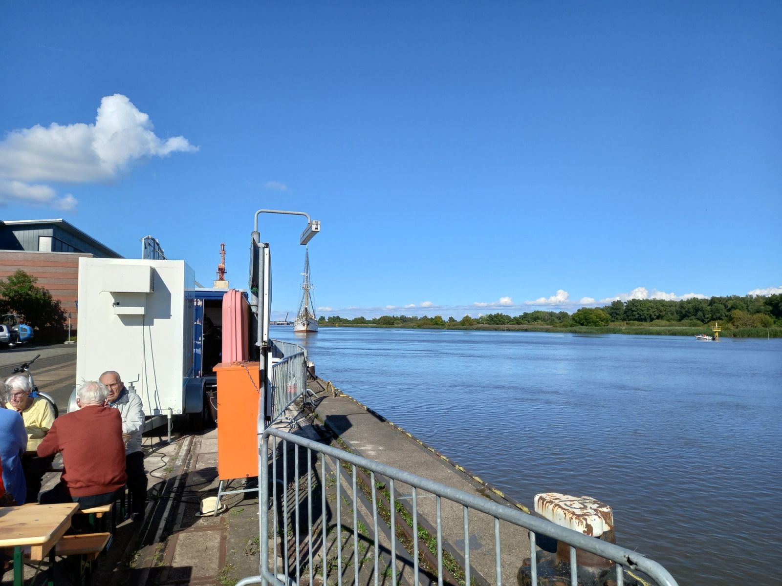 In Elsfleth wollen wir dann Mittag essen, es ist mitlerweile 15:15 Uhr, am Hafen sind einige Stände geöffnet, und beim Fischhändler gibt es für uns eine Portion Kibbeling mit Kartoffelsalat.