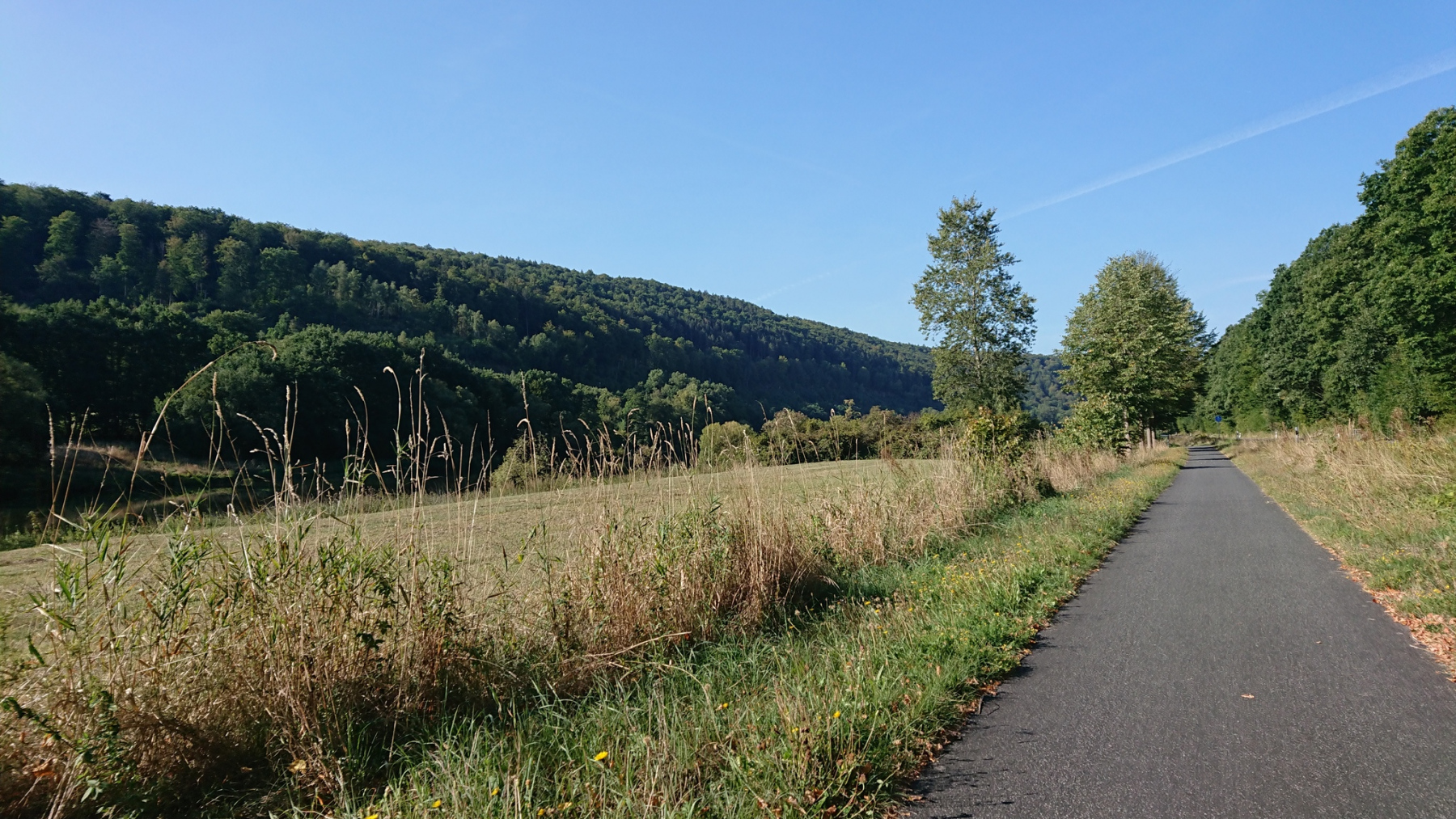 Nach gut einer halben Stunde trennen sich unsere Wege wieder – wir folgen weiter dem Ederradweg, der nun meistens auf Wirtschaftswegen mal auf Asphalt mal auf Schotter geführt wird.