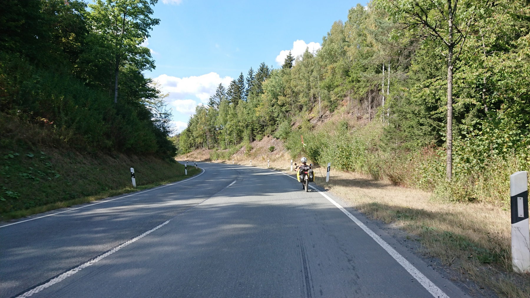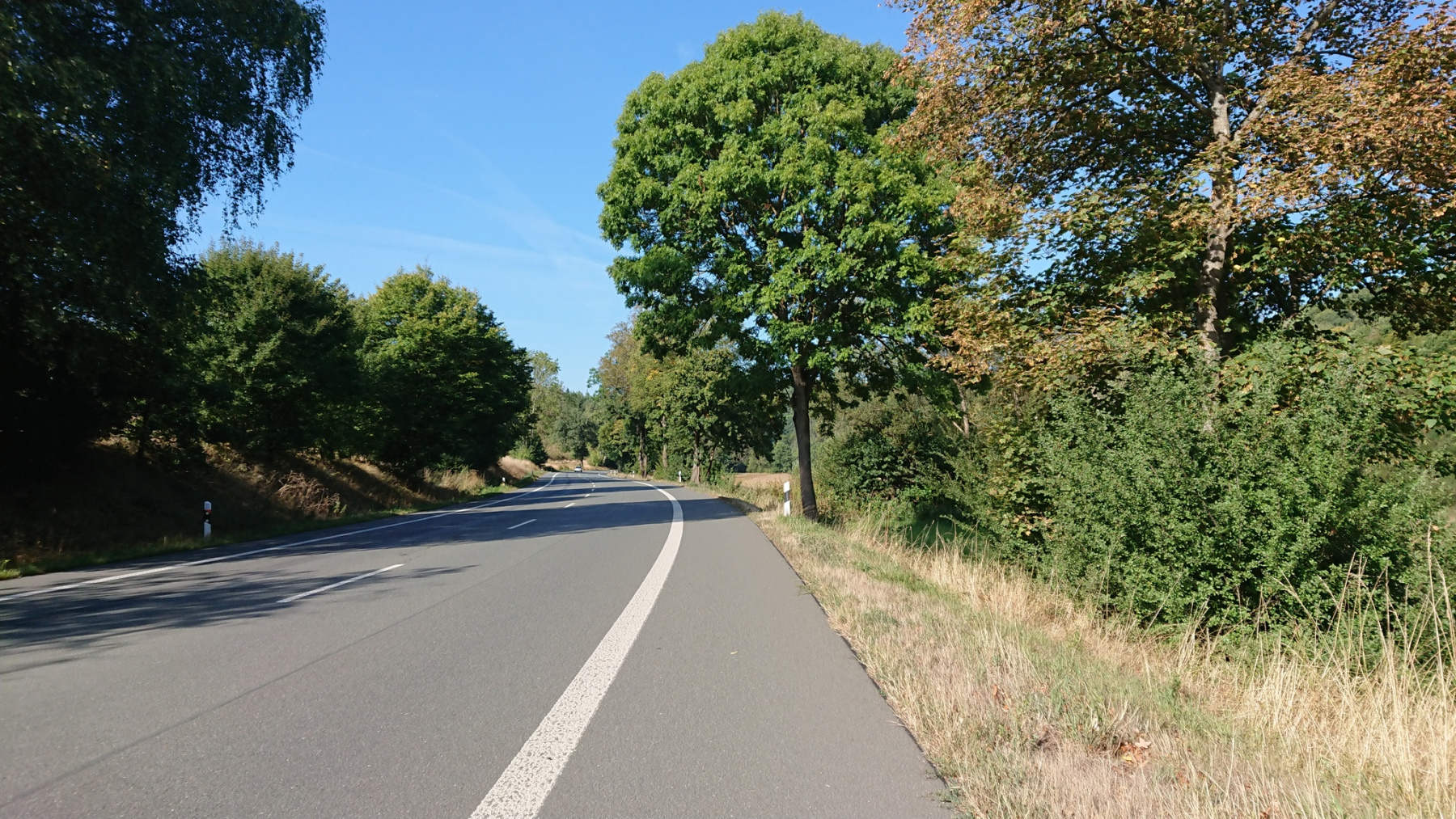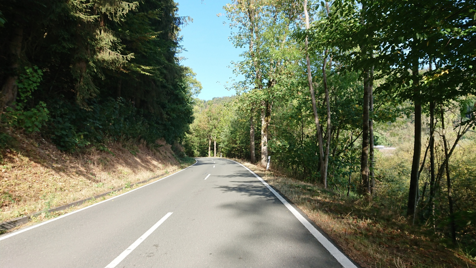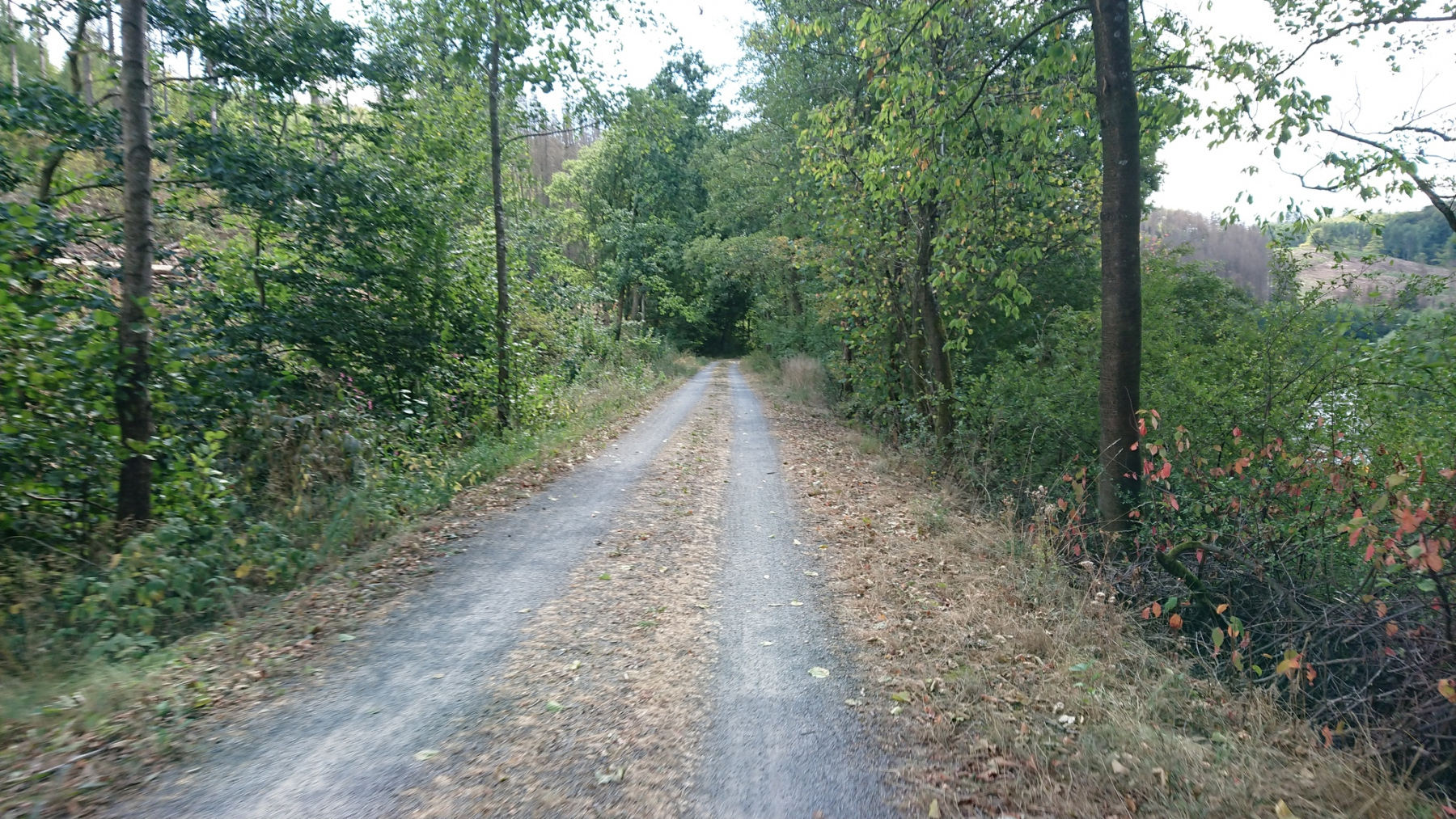 Immer wenn wir von der L553 wieder auf den Eder-Radweg einbiegen, erwartet uns meist ein neues Schotterabenteuer. Ab Aue bleiben wir einfach auf der L553, auch wenn der Verkehr hier mörderisch ist. Wir werden von LKW trotz Gegenverkehr überholt, so dass wir nur noch ins Grüne ausweichen können. Ja, wir sind bergan langsam unterwegs aber so muss es doch wirklich nicht sein. Leider werden wir von vielen PKW und LKW oft sehr eng überholt. Als Radfahrer hat man hier nur die Wahl zwischen Pest und Cholera – Geschotterte Waldwege oder viel Verkehr auf der L552.