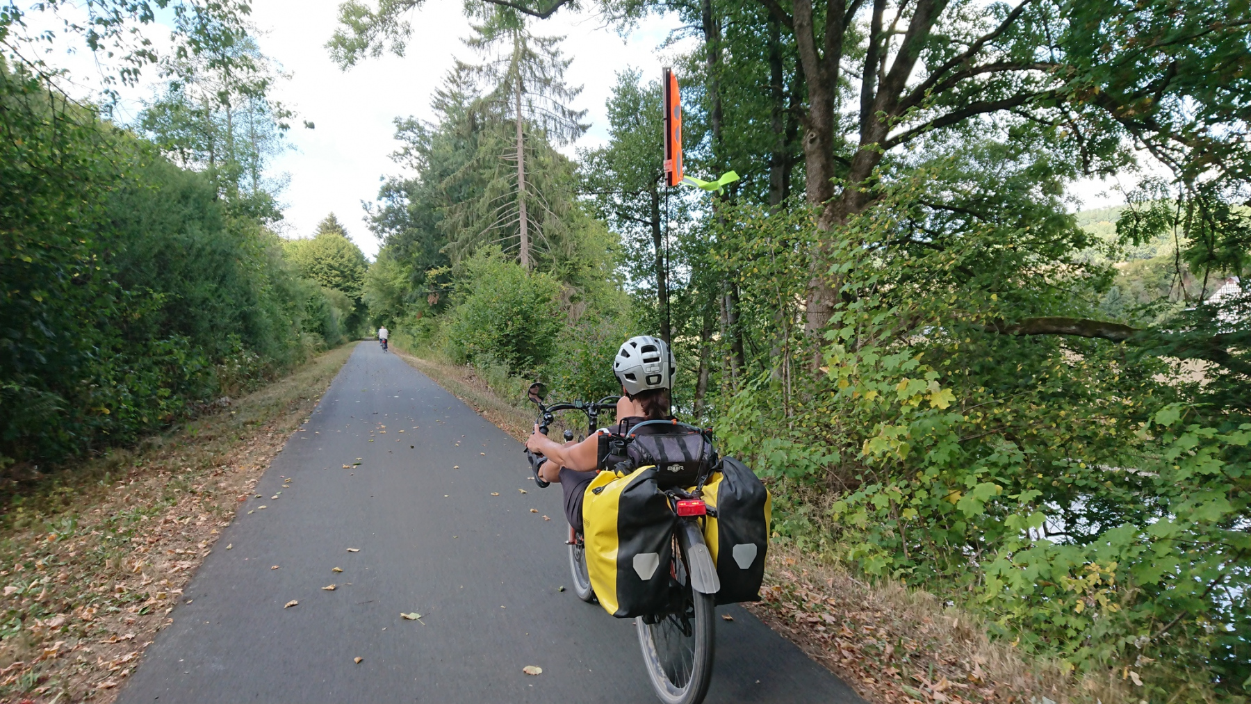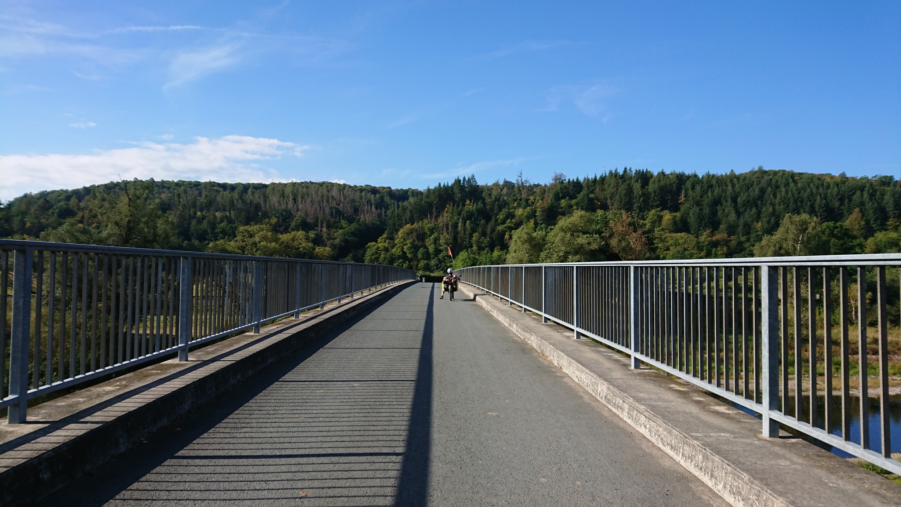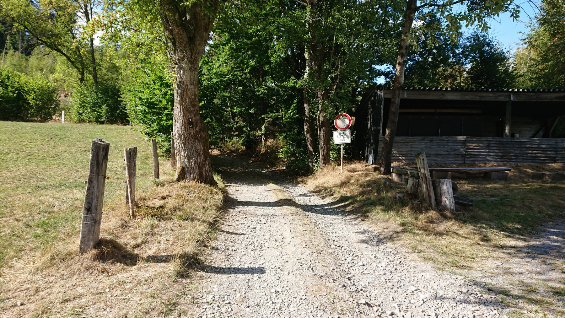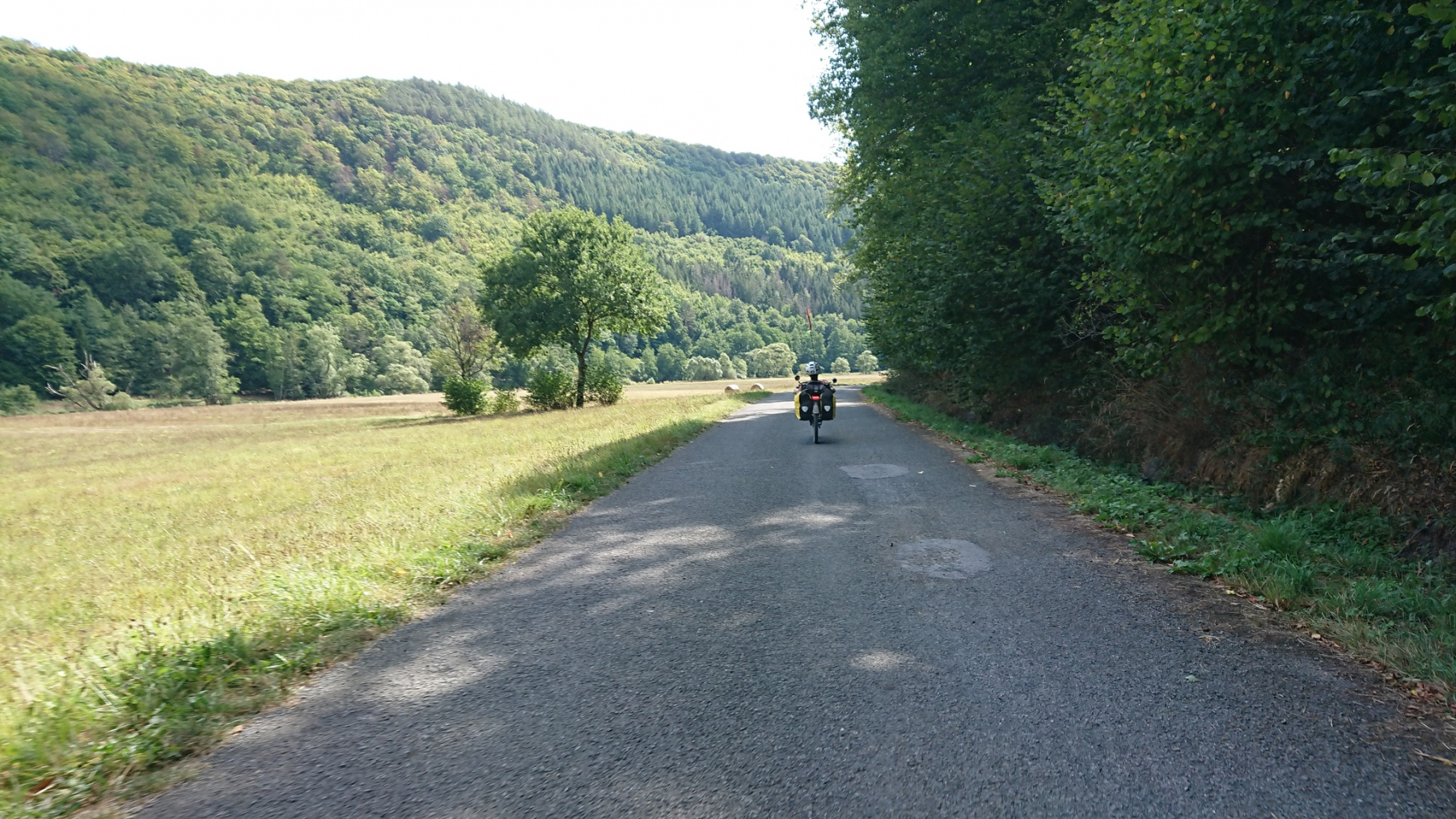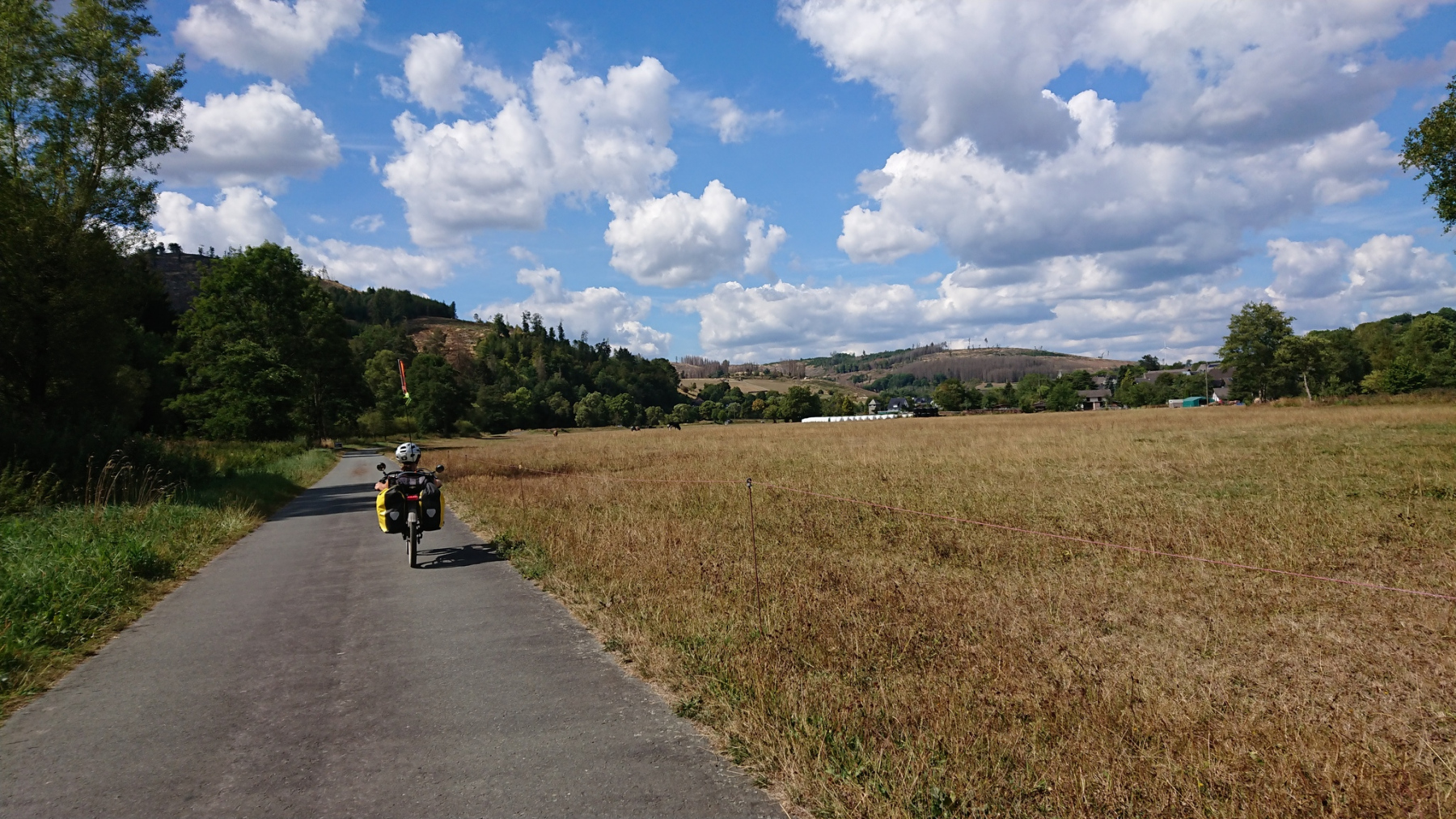 Ab Birkelbach kommen wir endlich von der L552 weg und können einigermaßen entspannt bis nach Erntebrück weiterfahren. In Erntebrück kaufen wir für den Abend ein und versuchen es erneut auf dem Eder-Radweg. Aber auch hier nichts als Waldweg-Schotter. Also legen wir die letzen 5km wiederrum auf der Bundesstraße (ohne Radweg) zurück. Auch hier wieder das gleiche Spiel: PKW und LKW die viel zu dicht überholen.