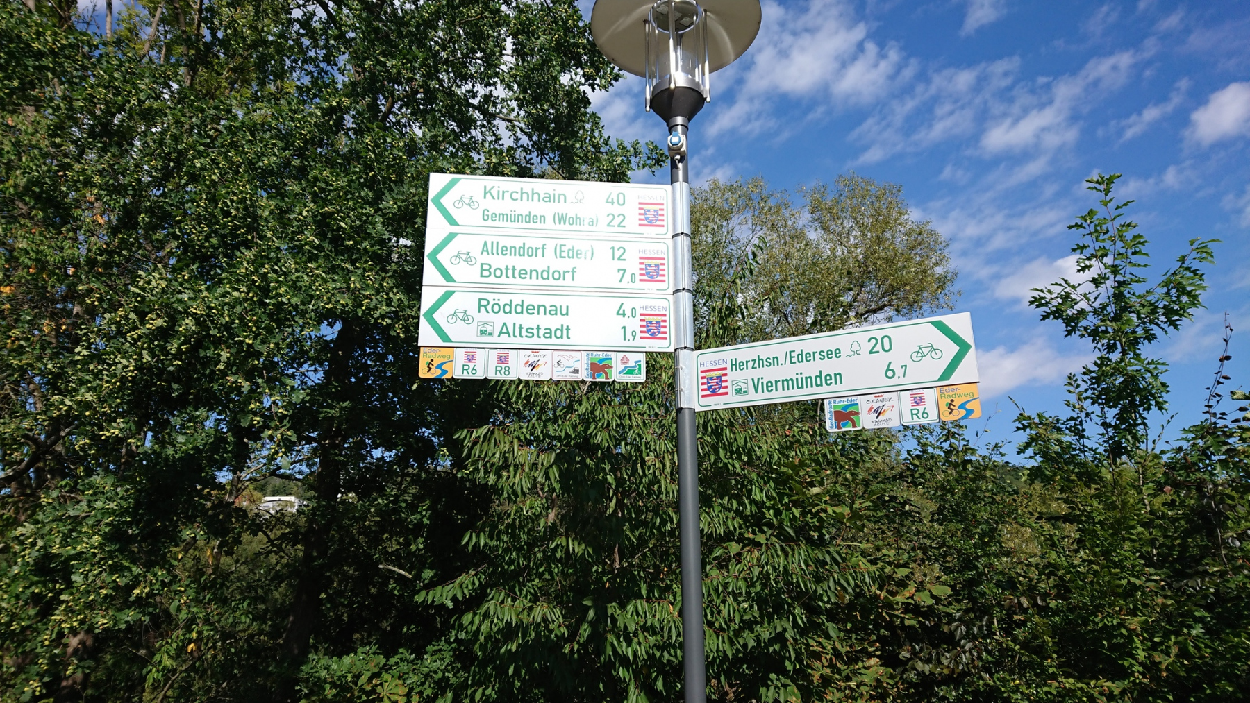 Auch heute erwartet uns wieder ein sonniger Tag. Vor uns liegen knapp 100km entlang der Eder. Heute wollen wir bis ins Quellgebiet fahren. Aufbruch in Harbshausen ist 9:40 Uhr.