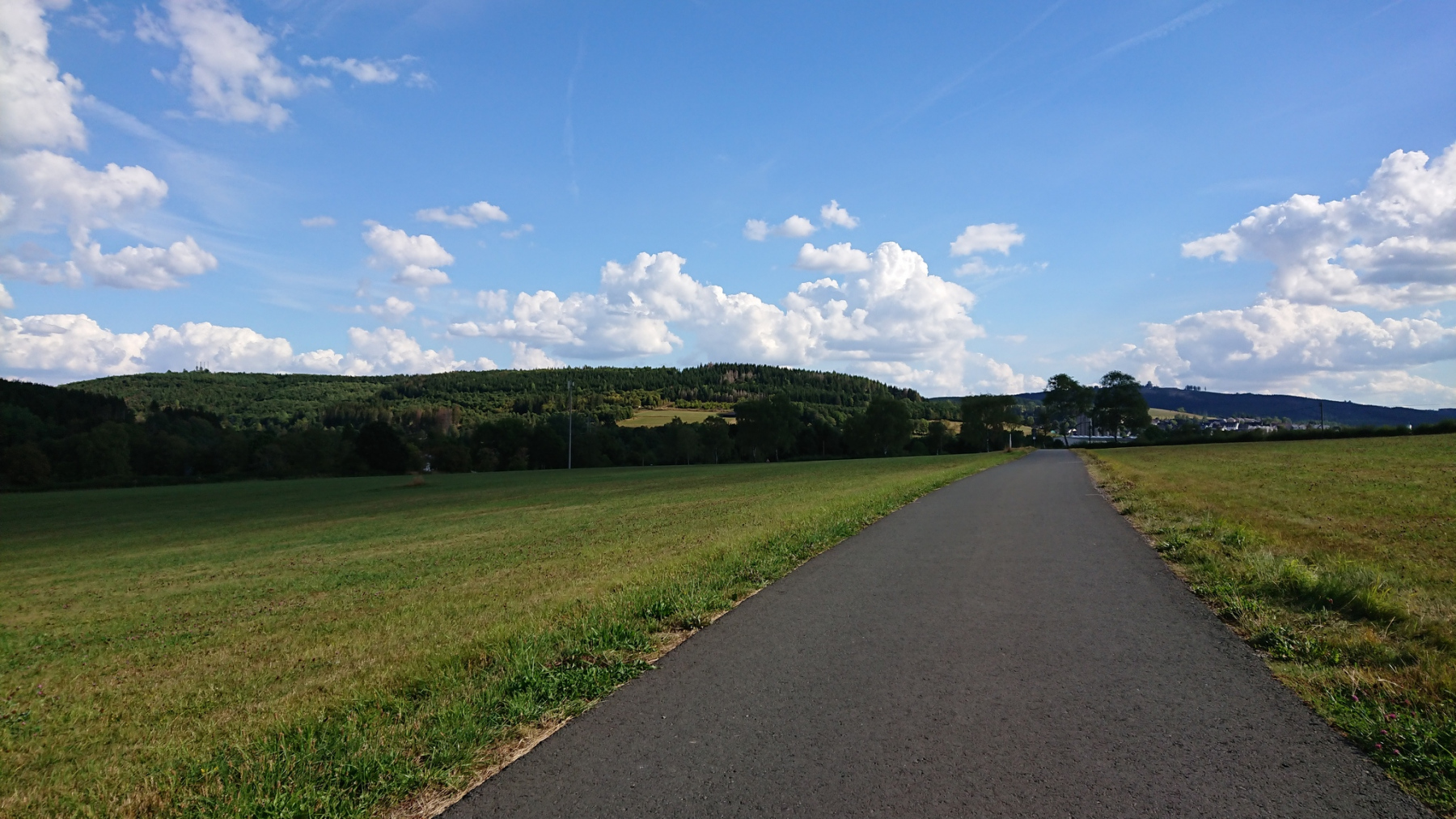 Kaum merklich geht es immer bergan, bis zur Landesgrenze von Hessen und NRW sind wir uns rund 150 Höhenmeter hinaufgefahren, ohne es groß zu merken.