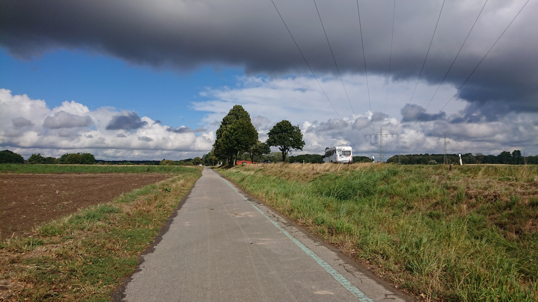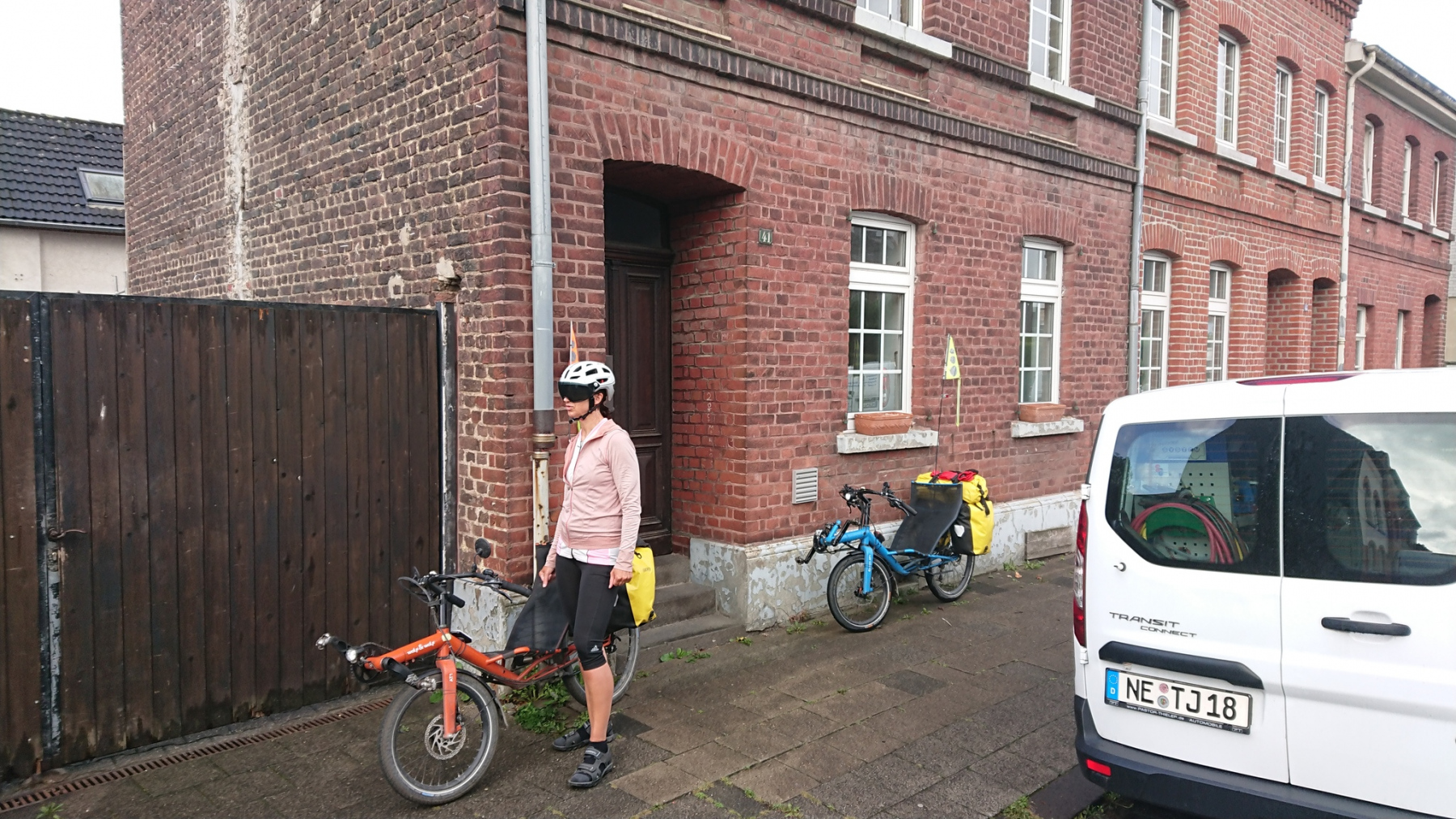 In der Nacht hat es kräftig geregnet. Morgens beim Brötchenholen regenete es noch leicht. Als wir aufbrachen war es trocken und der Regen zog ab. Wie toll ist das denn. Abends hatten wir schon geschaut, wie man denn mit dem Zug nach Gennep kommen könne, wenn es den ganzen Vormittag regnen würde, aber das ist nicht mehr notwendig. Aber wir haben die Tour kürzer gemacht und somit nur knapp 80 km vor uns, denn unsere Abfahrtszeit hat sich wegen des Regens nach hinten geschoben. Erst um 10:15 fahren wir in Korschenbroich ab.