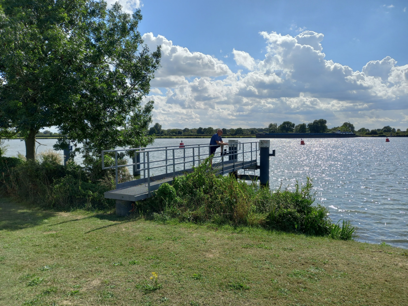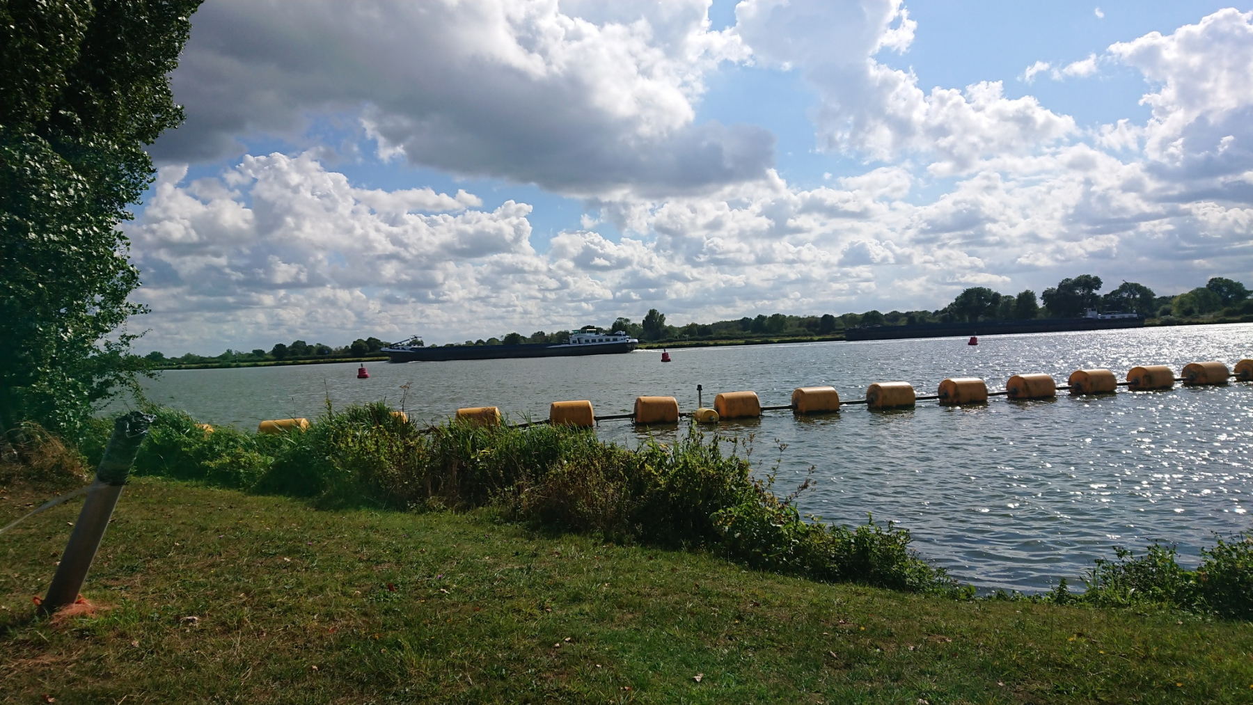 Als sich die Möglichkeit bietet, an der Maas noch eine kleine Pause zu machen, fahren wir die wenigen Meter links rein. Uns erwartet ein schöner Rastplatz direkt an der Maas.