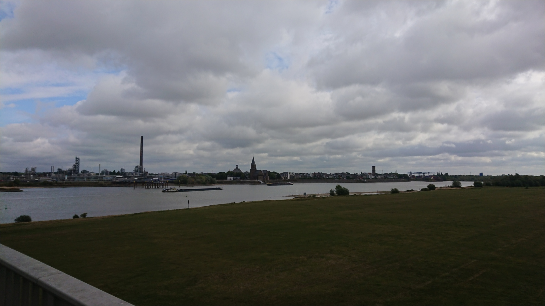 Schon nach kurzer Zeit hatten wir die Grenze nach Deutschland passiert und näherten uns Kleve. Einmal mitten hindurch und dann sahen wir in der Ferne schon die roten und weissen Brückenpfeiler der Rheinbrücke bei Emmerich auftauchen.