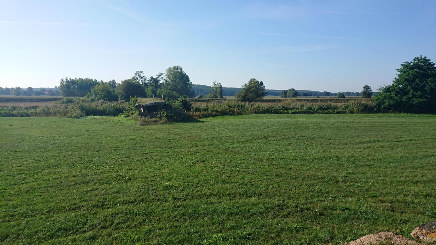 Wir folgen dem Verlauf der Spree, dicht am Ufer geht es entlang. Schön ist es hier abseits der Straßen, das meint wohl auch der Storch auf der Wiese.