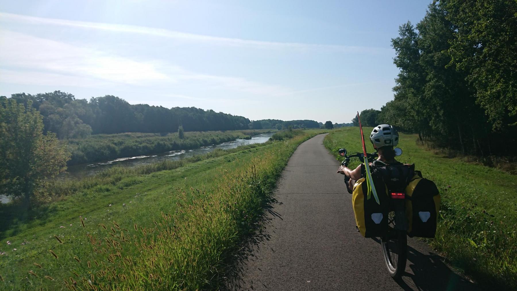Entlang der Neiße auf dem Deich geht es Richtung Süden.