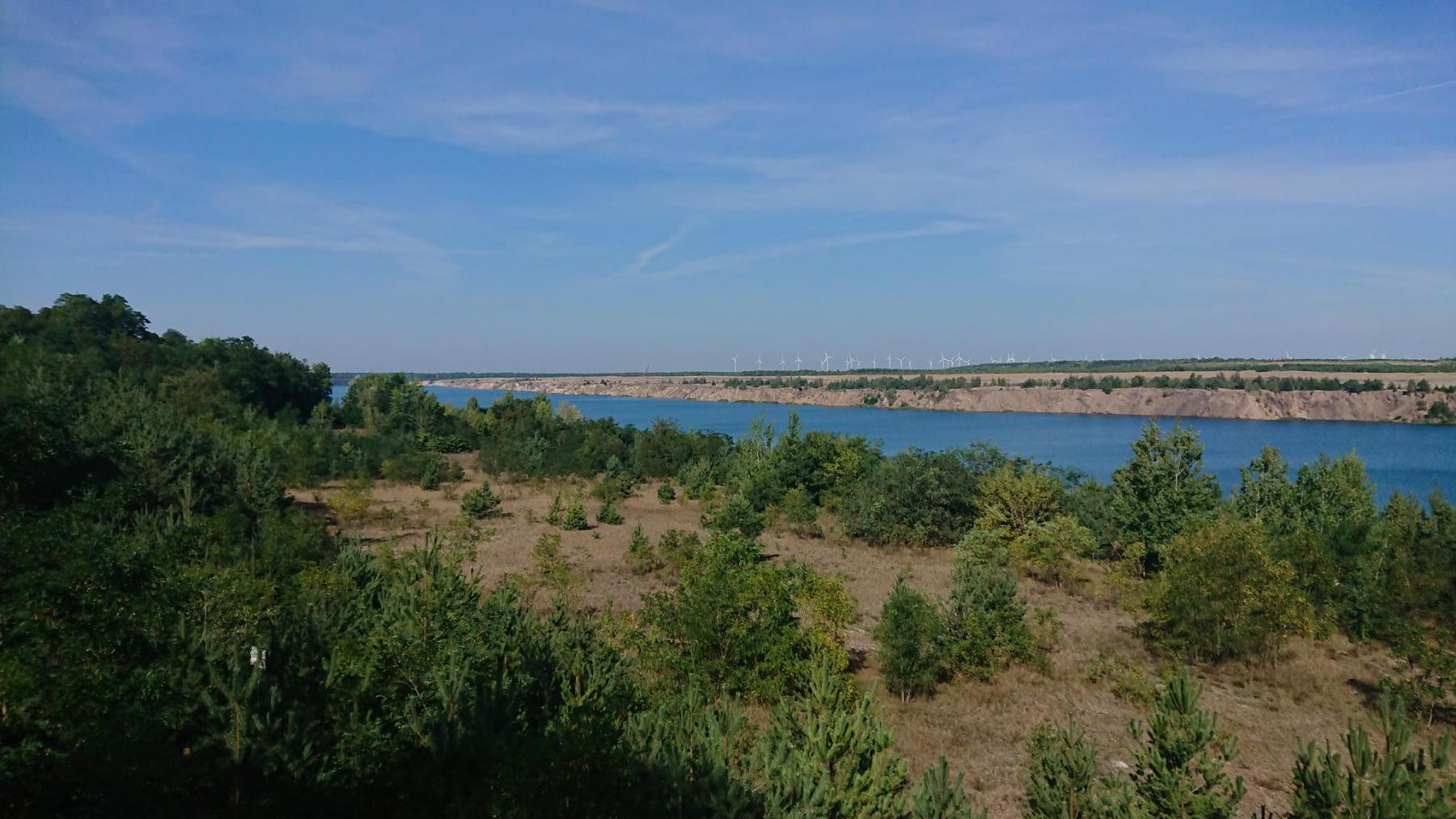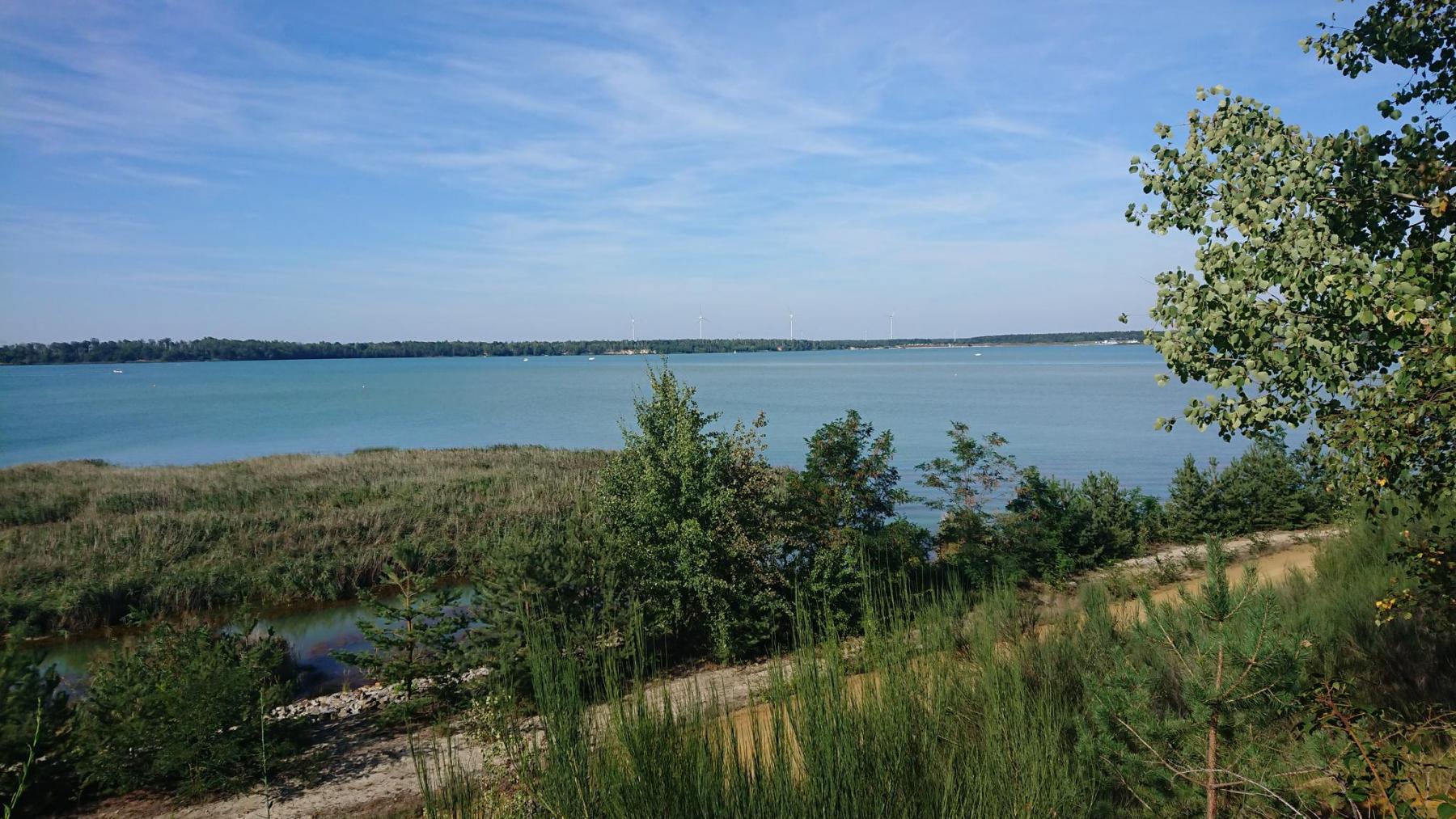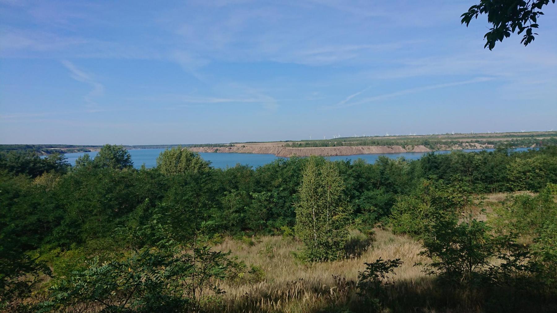 Von nun an geht es an vielen Seen vorbei, alles alte Tagebaulöcher, die mit Wasser aufgefüllt werden, aber nur selten kann man einen Blick auf den See werfen.