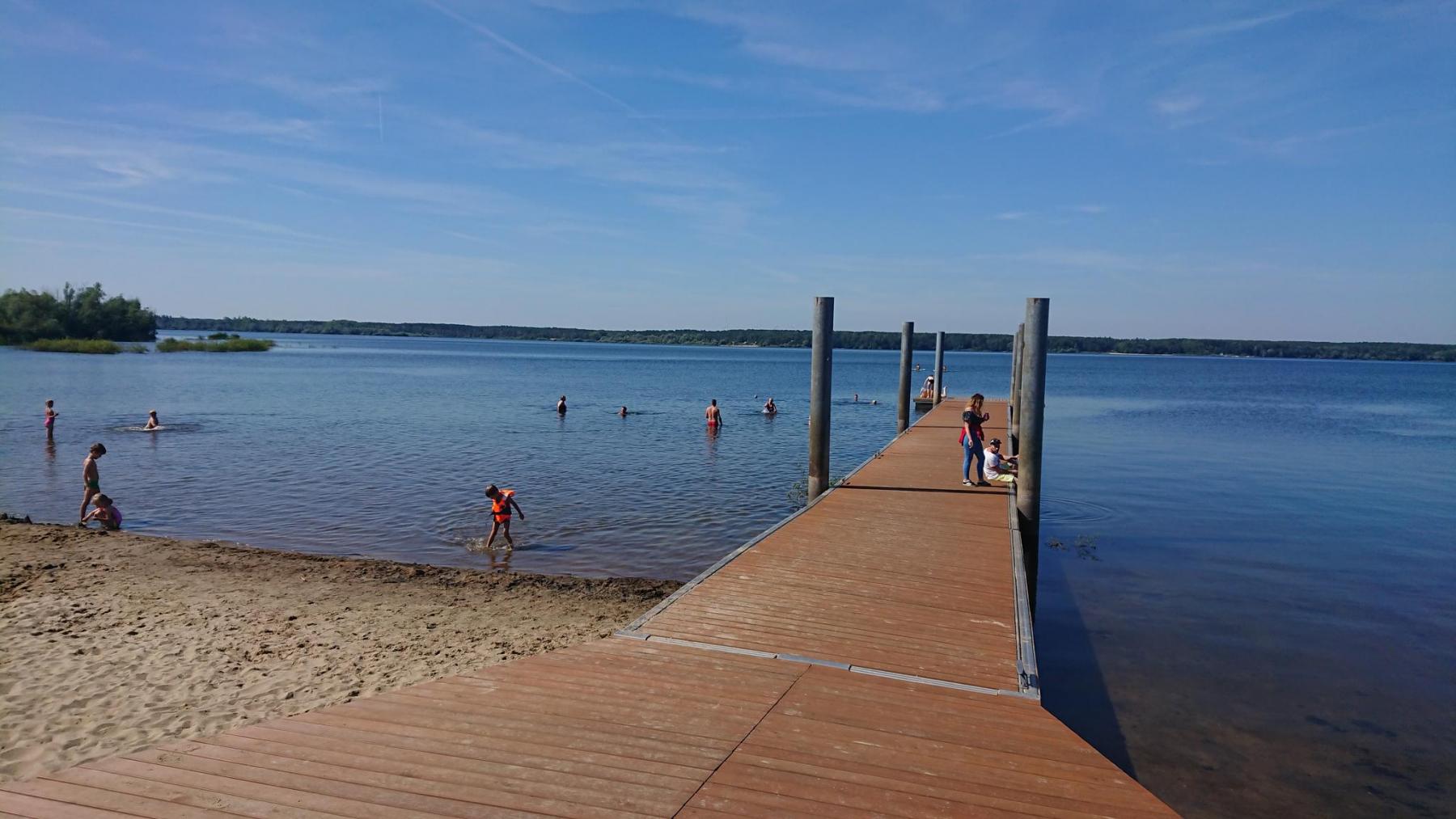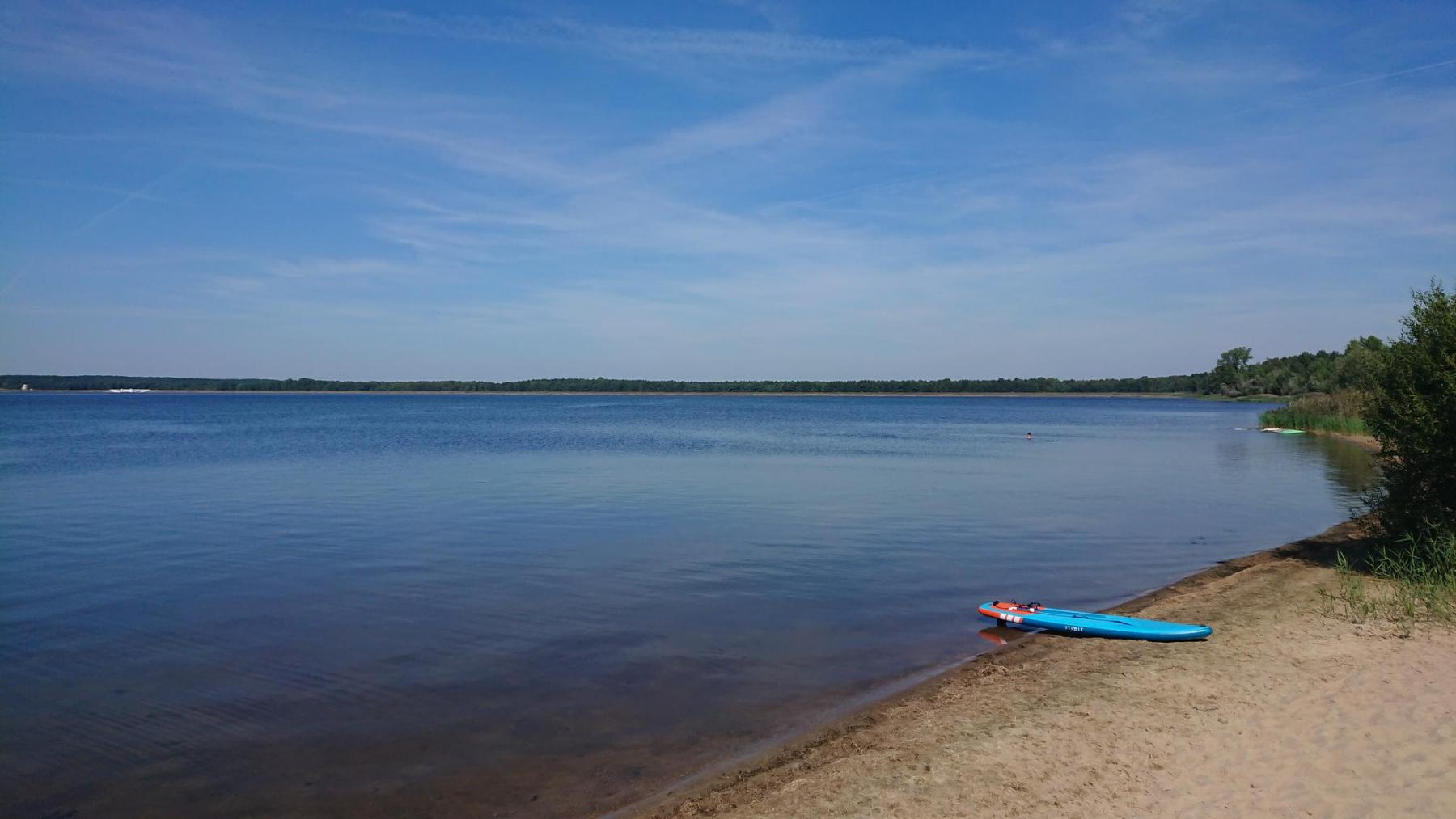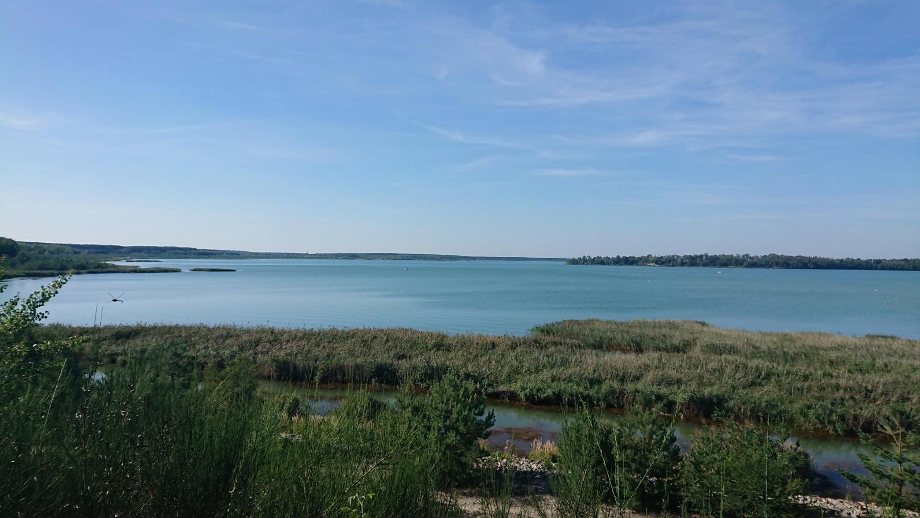 Von nun an geht es an vielen Seen vorbei, alles alte Tagebaulöcher, die mit Wasser aufgefüllt werden, aber nur selten kann man einen Blick auf den See werfen.
