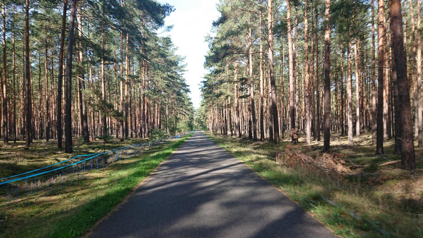 Und wieder geht es kilometerweit durch schönen Wald, aber alles Kiefer-Monokulturen.