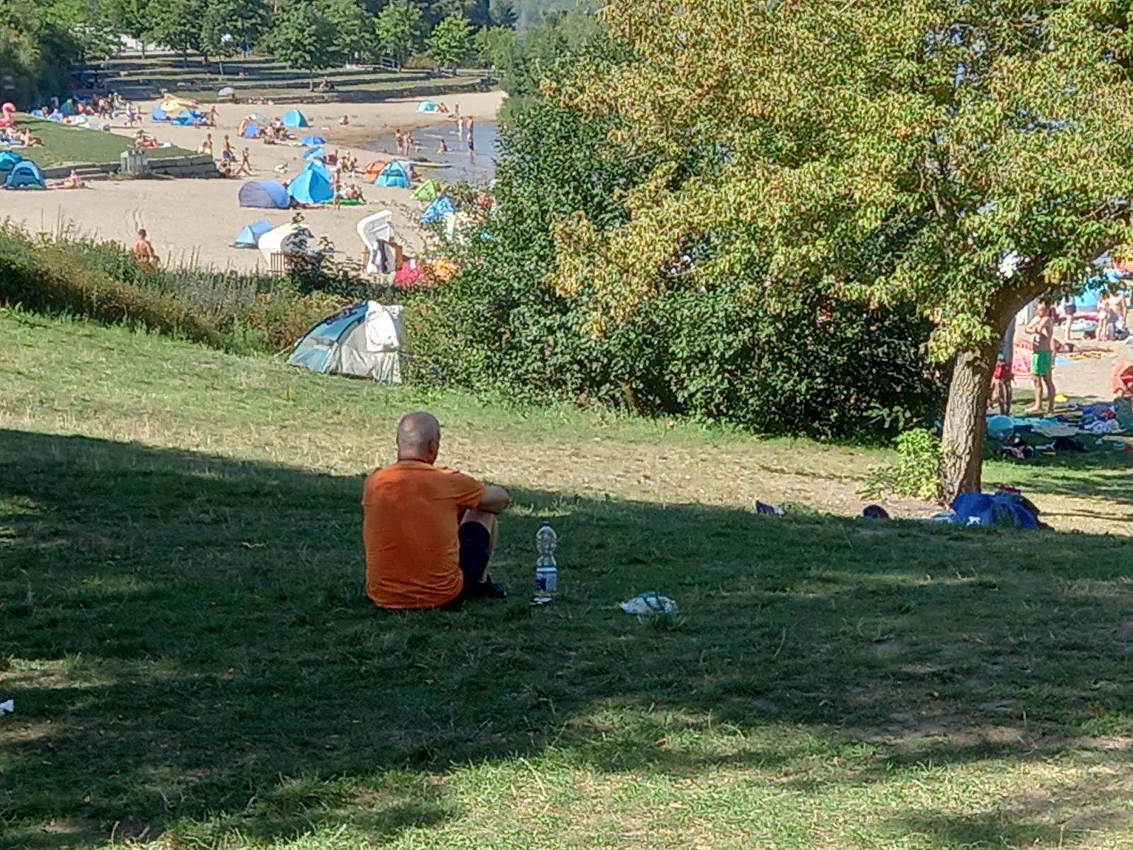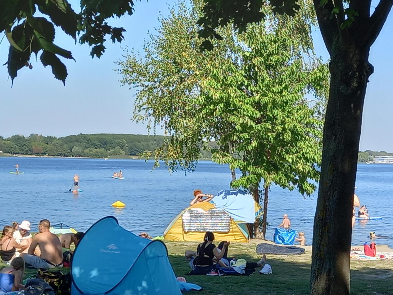 Von hier aus sind es noch gut 15km bis nach Senftenberg. Am See machen wir noch eine Pause und gehen baden im See – bei mehr als 30 °C eine echte Erfrischenung.