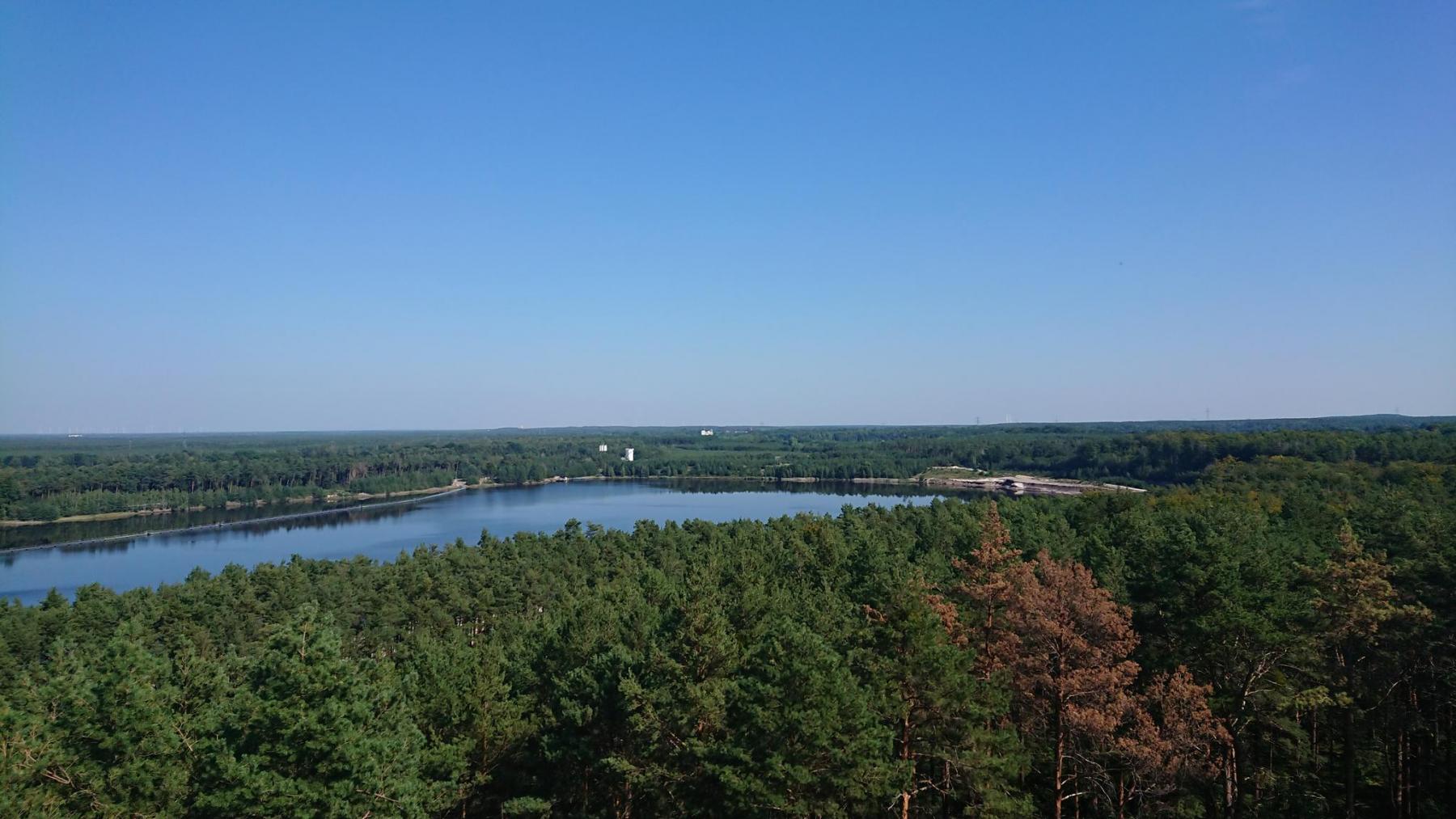 Natürlich erklimmen wir den Rostigen Nagel, von dort oben hat man einen tollen Blick über die umliegenden Seen und Wälder.
