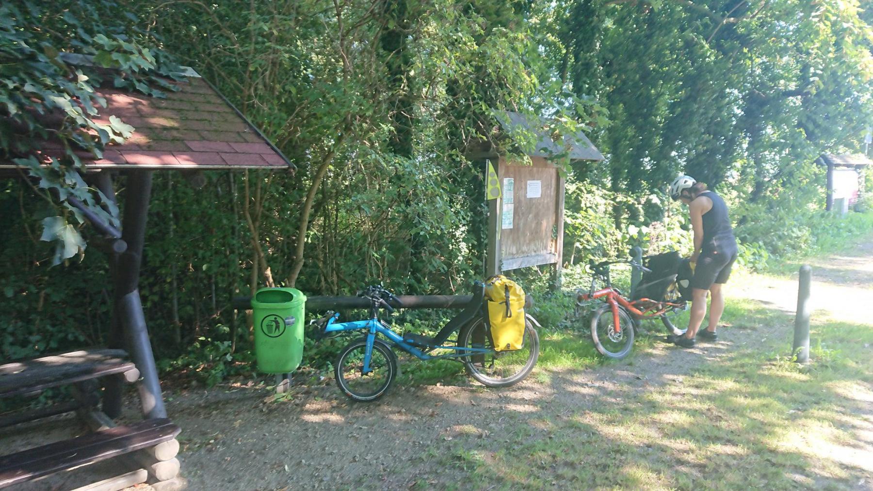 Wir fahren fast immer an der schwarzen Elster entlang. Keine Höhenunterschiede und da es heute fast windstill ist einfach super zu fahren.