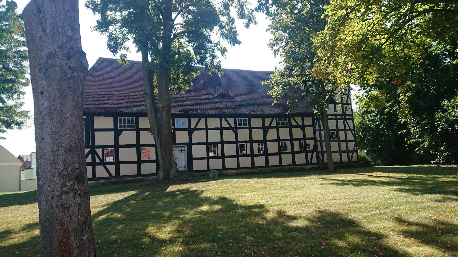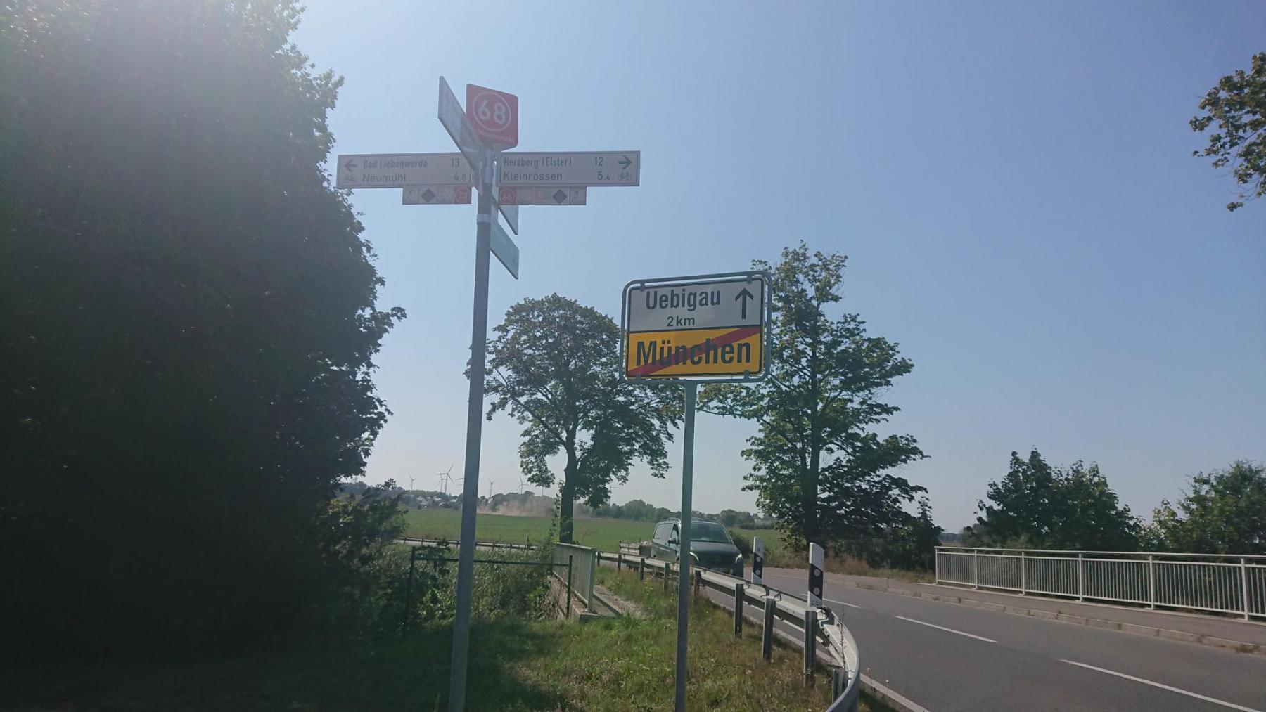 Kurz hinter Herzberg trennen wir uns von der Tour Brandenburg, die weiter nach Norden führt, wir folgen weiter dem Elster-Radweg. Die Ausschilderung ist nicht mehr so gut, Bei Mönchehöfe müssen wir auf der vielbefahrenen B187 fahren. Und einen Radweg gibt es nicht. Ganz toll, wenn die 40-Tonner einen überholen. In Schweinitz sollen wir dann an der Elster entlang – Ausschilderung als Wanderweg.