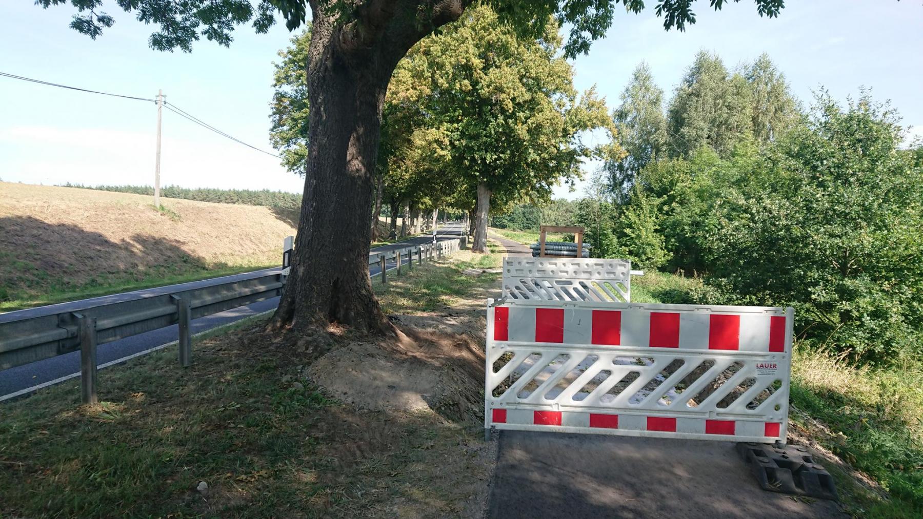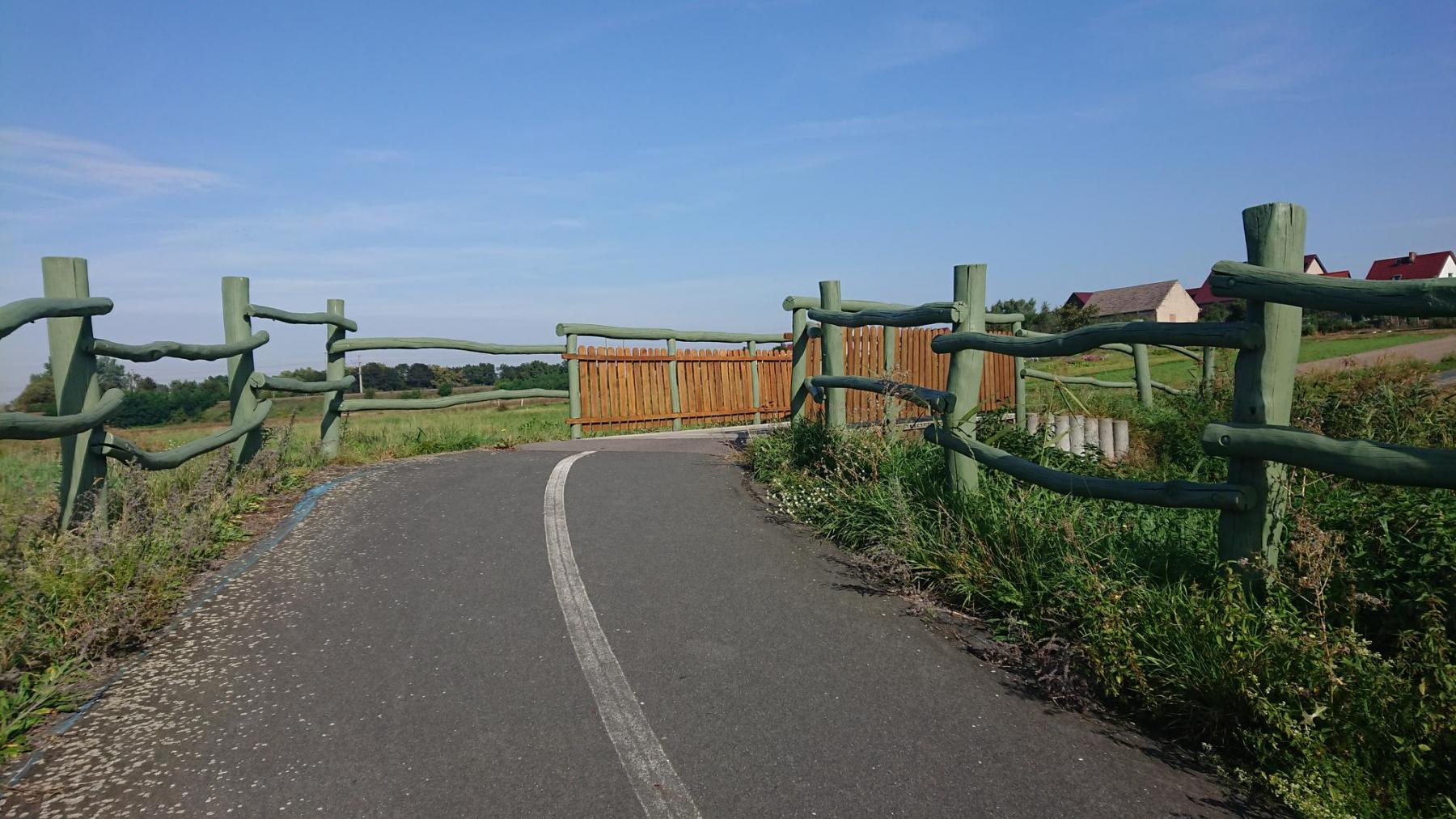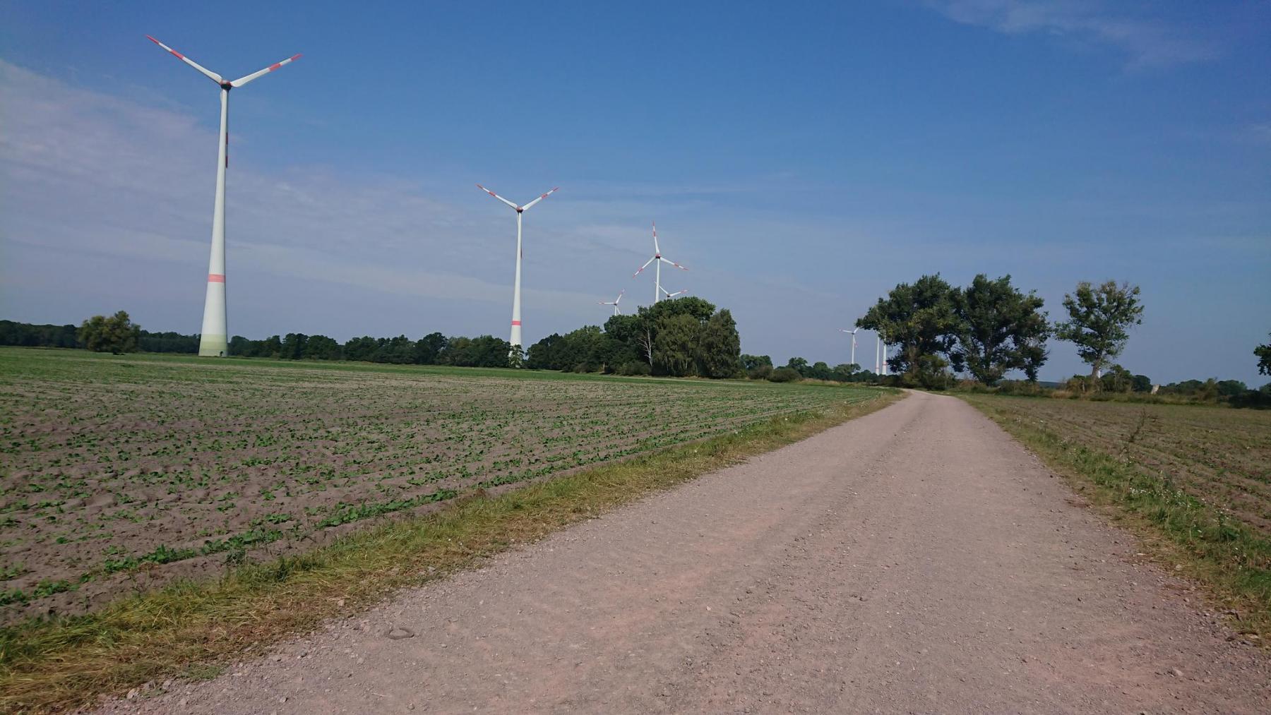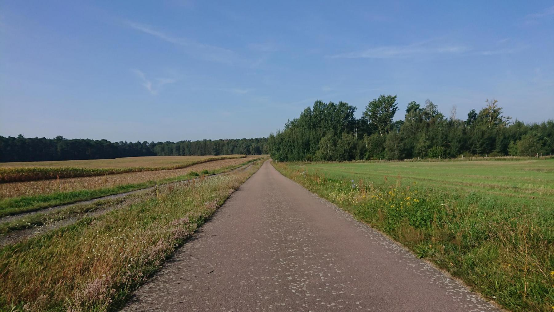 Nun haben wir endlich die richtige Straße gefunden, noch rund 20 km bis zu unserem Ziel. Entlang der Landstraße, über den Hügel, höchter Punkt sind heute 156m ü.NN, eine schöne Strecke auf einem ehemaligen Bahndamm am Ende des Tages.
