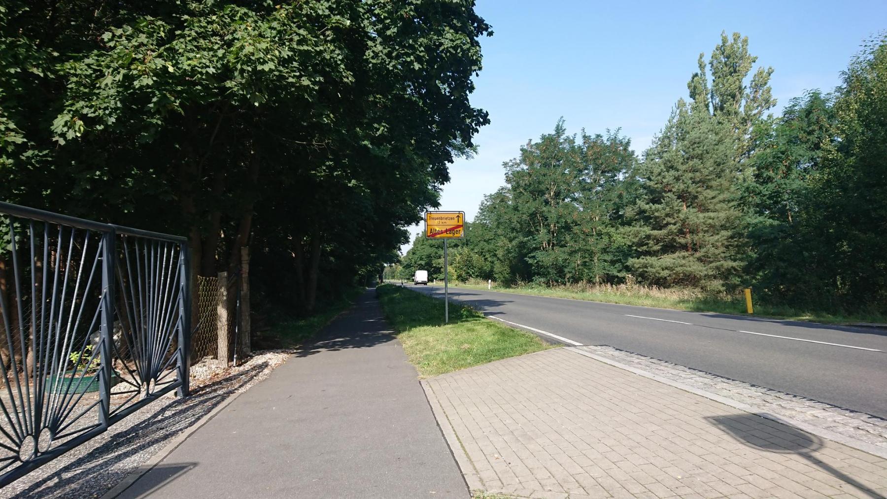 Und dann zwischen Niedergörsdorf und Altes Lager, die Straße ist viel zu breit und viel zu gerade für eine Landstraße, nebenann ein alter Flugplatz, die Straßen auf denen wir fahren sind vermutlich alte Rollbahnen.