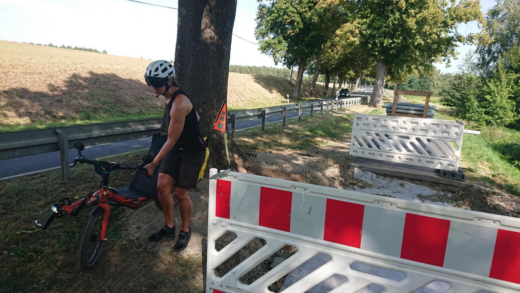 Aber unterwegs gibt es auch merkwürde Baustellen – kein Hinweis und keine Möglichkeit auf die Straße zu gelangen, quetschen wir uns irgendwie dran vorbei