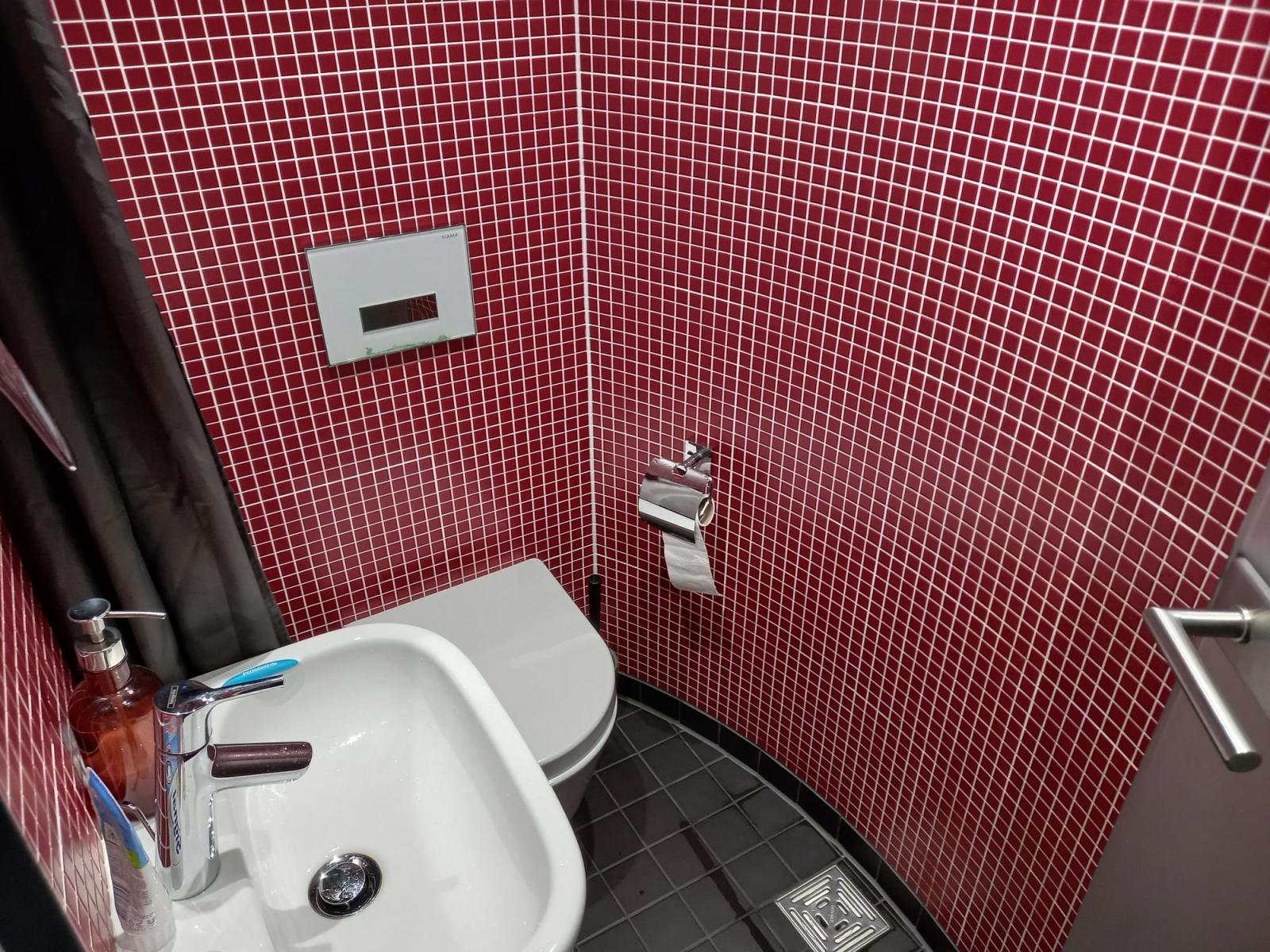 Eine Röhre knapp 3m Durchmesser, 2 Geschosse, unten Bad und „Wohnzimmer“ oben Schlafzimmer. Alles sauber und recht neu. Außer uns ist nur ein Monteur anwesend und in der Nacht kommen gegen kurz vor Mitternacht noch ein paar weitere Gäste.