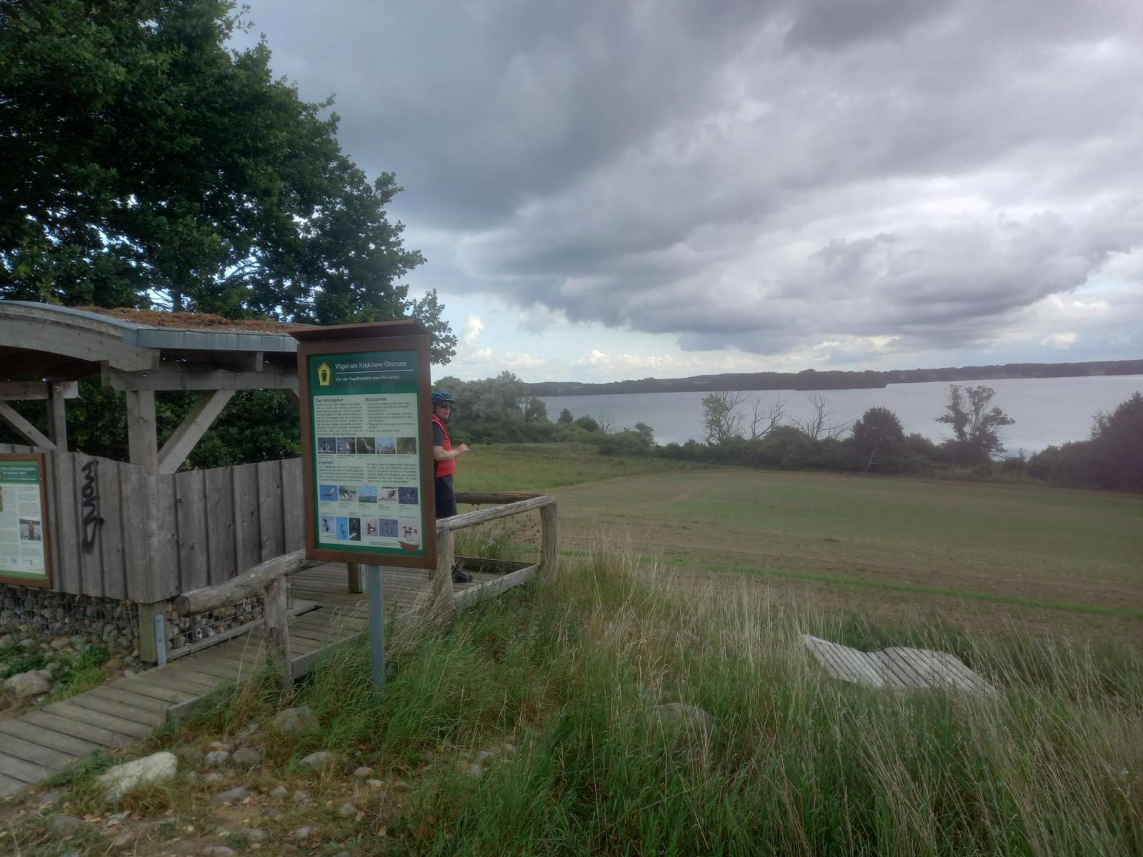 Gegen Mittag erreichen wir den Krakower See und machen ein kleine Rast am „Dr. Neubauer Blick“ und genießen für kurze Zeit den weiten Blick über den See.