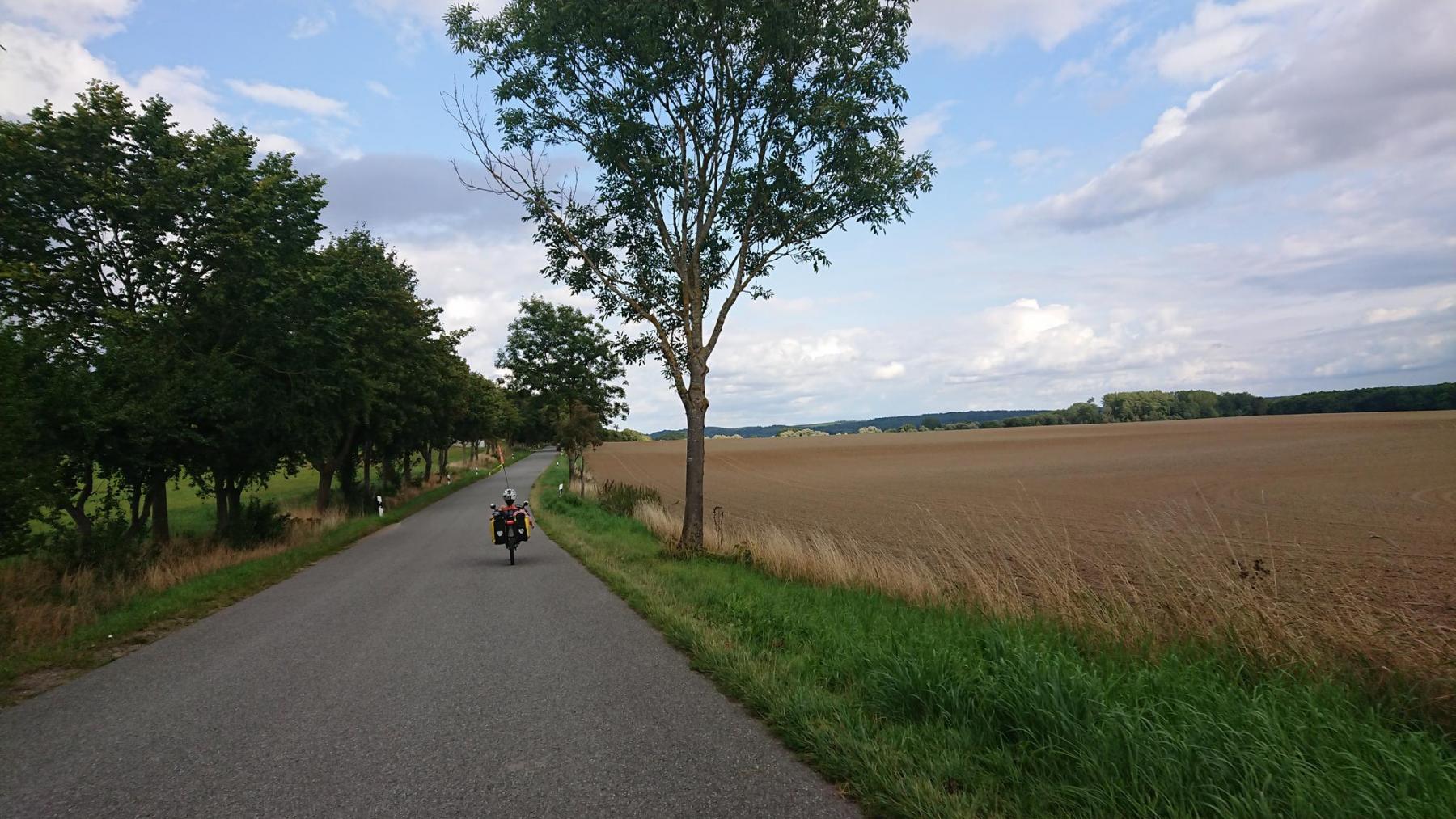 Das Wetter wird im Laufe des Tages langsam immer besser, zunächst nach dem Regen gestern abend sind noch dicke Wolken am himmer, aber die Wolkenlücken werden größer und nachmittags zeigt sich sogar immer mal wieder die Sonne. Die Temperaturen sind ideal zum Radeln : von etwa 18°C steigen sie am späten Nachmittag auf 21°C.