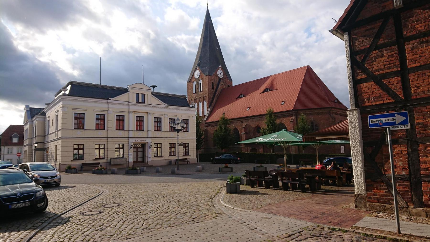 Nachdem Einchecken machen wir uns auf Entdeckundstour durch Neukalen. Viel gibt es dort nicht zu sehen, die Stadt ist klein, Marktplatz mitten in der Stadt ist das Rathaus, die Kirche, ein Bistro und der merkwürdige Edeka. Am Hafen ist das Gasthaus und ein Cafe. Auch wenn es auf den ersten Blick anders ausschauen mag, Aber viele Häuser stehen leer.
