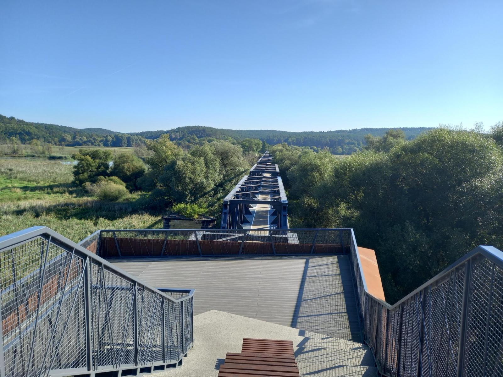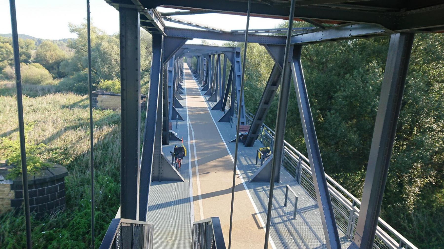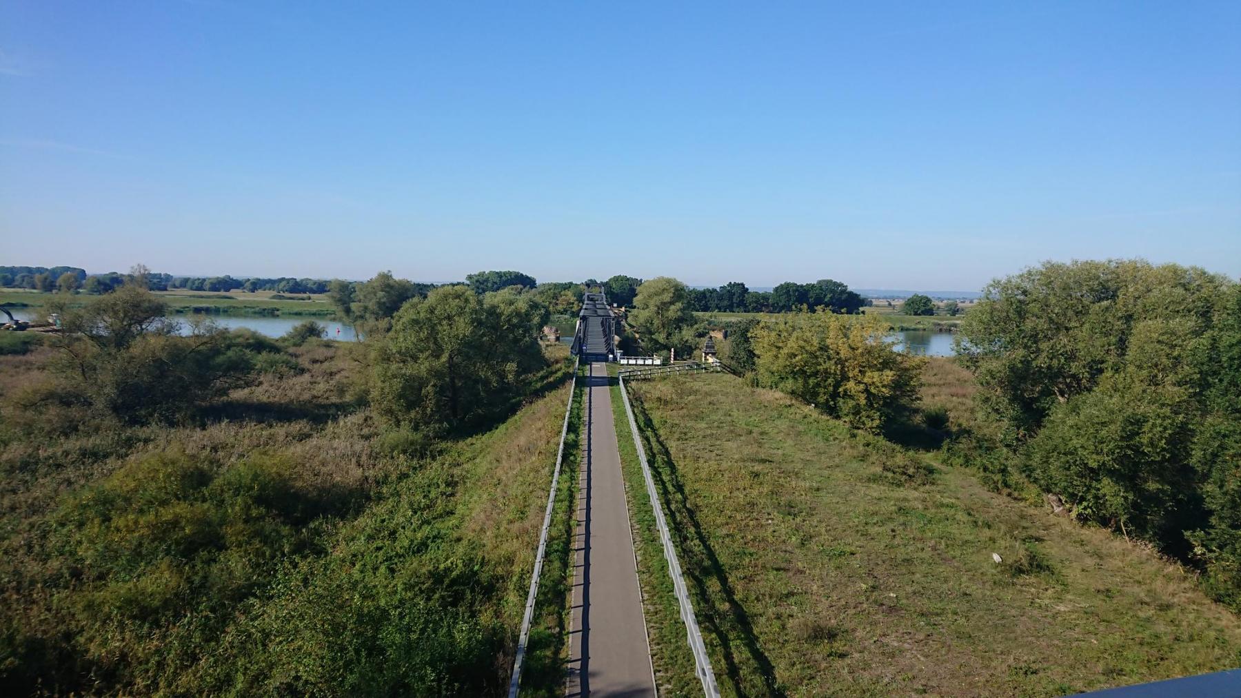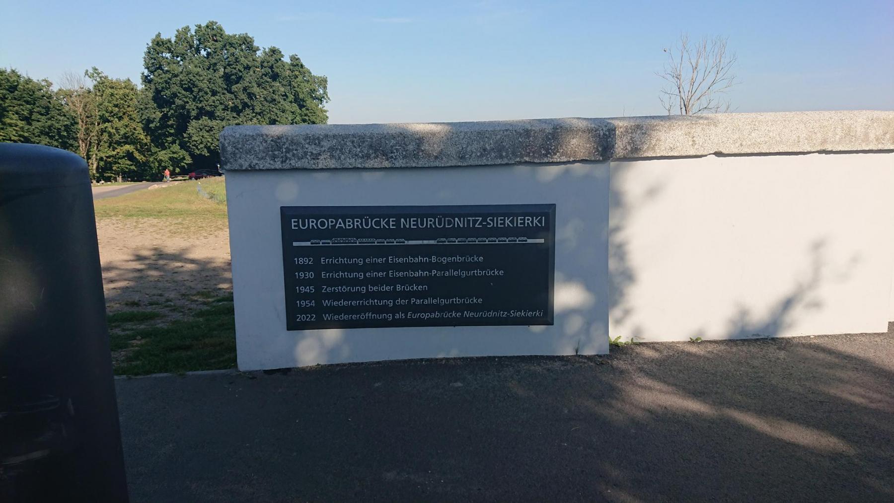Unser erstes Etappenziel ist nur 8 km entfernt. Die Europabrücke Neurüdnitz. Früher eine Bahnbrücke für den Truppentransport, im 2 Weltkrieg gesprengt, dann als Bahnbrücke wieder aufgebaut und heute eine Brücke, die für Fußgänger und Radfahrer Polen und Deutschland verbindet.