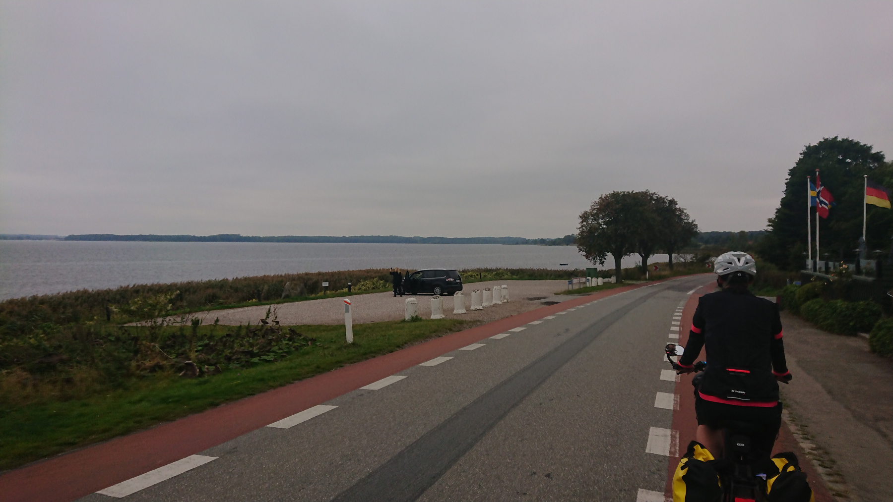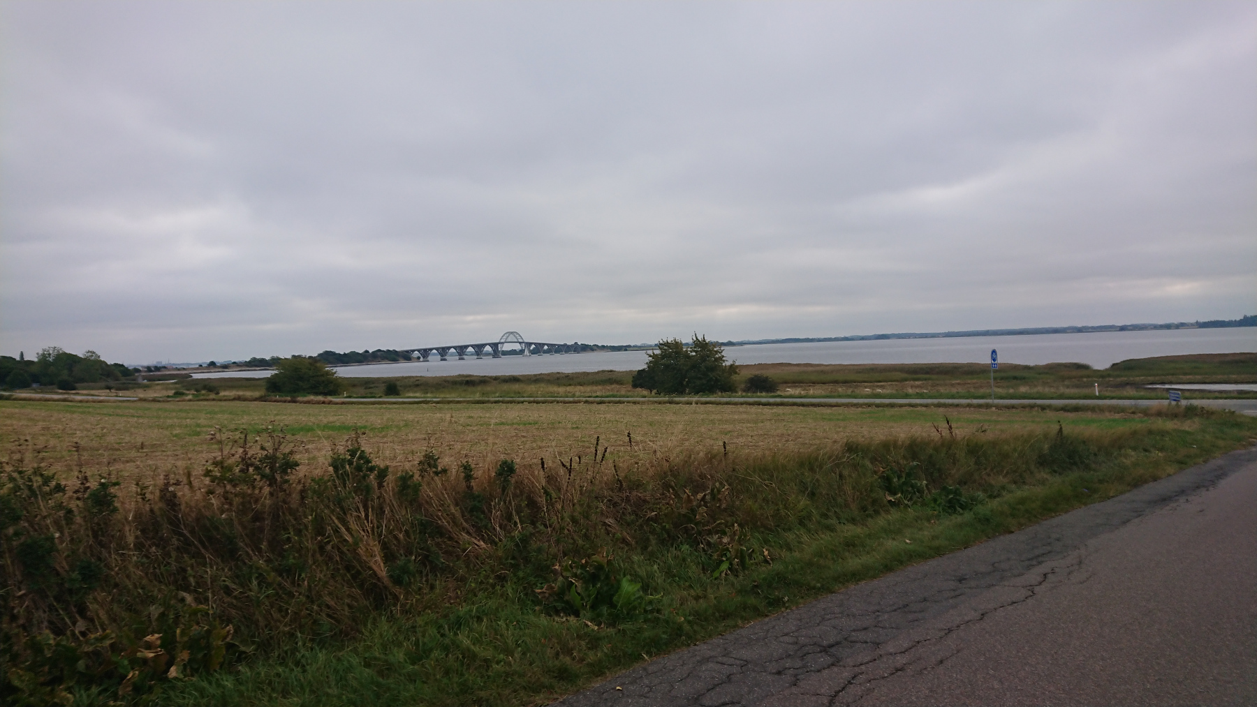 Von hier aus kann man nun auch schon die Insel Møn sehen. Die Brücke nach Møn ist alt und schmal und der Wind hat mächtig aufgefrischt und kommt uns nun, da wir nach Osten fahren entgegen.