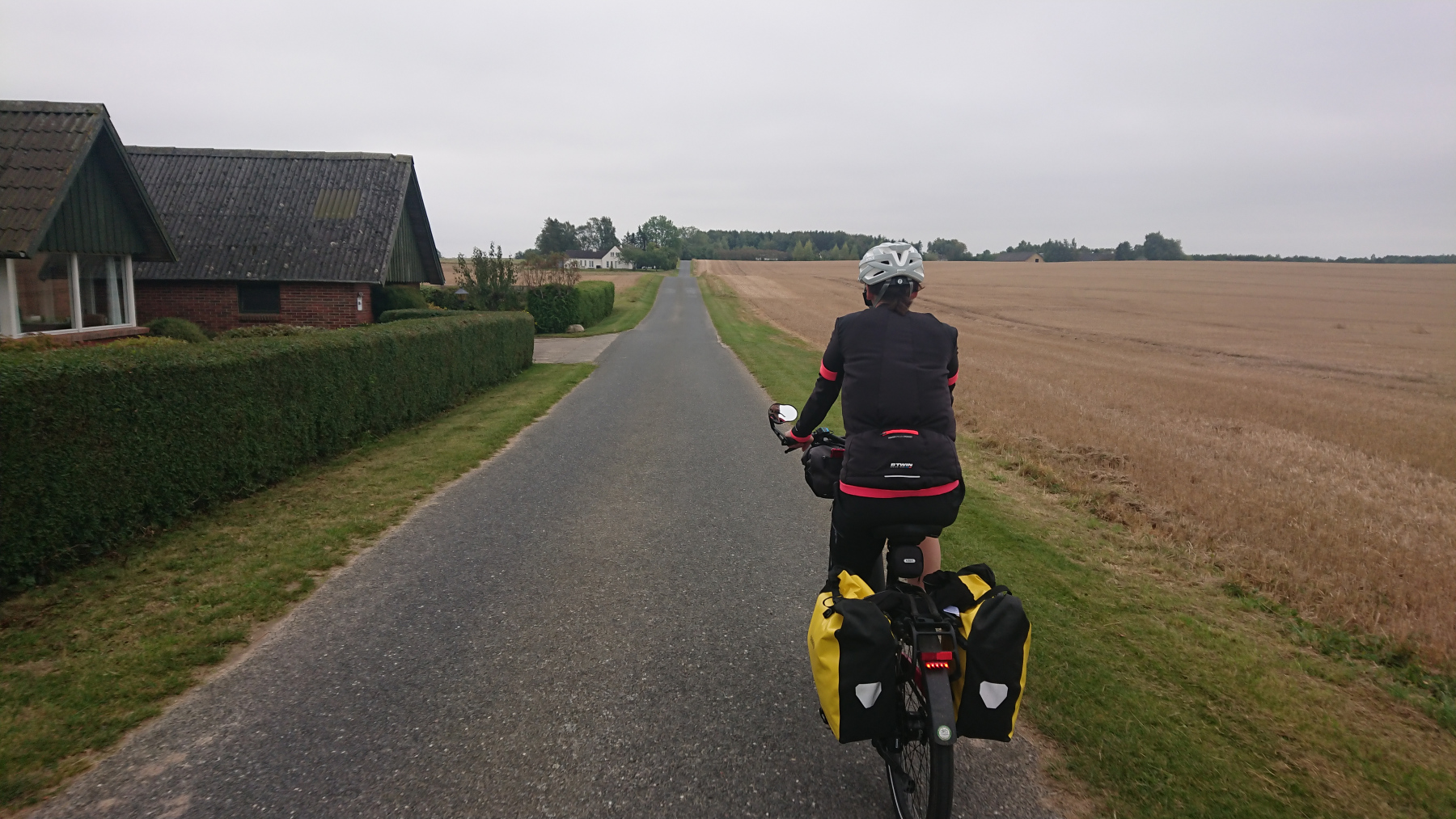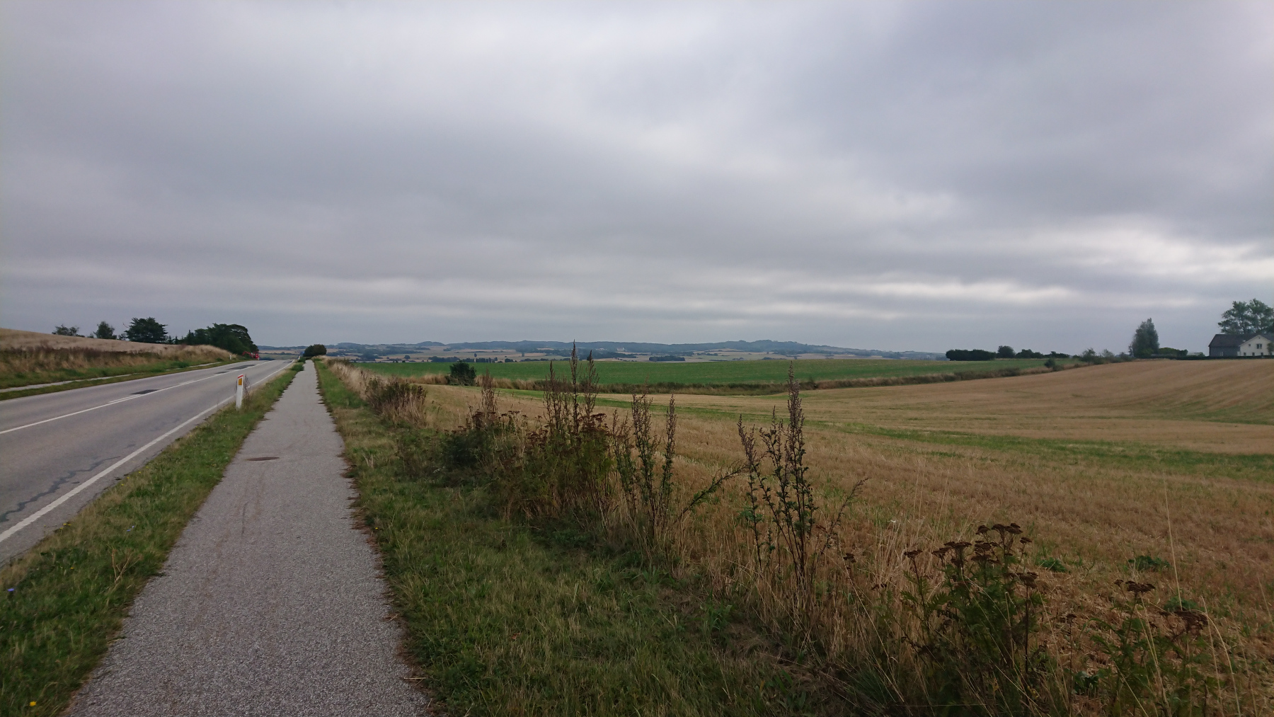 Wir sind wieder auf dem Ostseeküstenradweg und dem Radweg Berlin-Kopenhagen unterwegs. Es geht mal mehr mal weniger weit von der Küste entfernt nach Süd-Ost. Es geht auf kleinen Straßen und immer wieder geht es auf und ab. Leider ist die Sonne nicht zu sehen und alles ist grau in grau.
