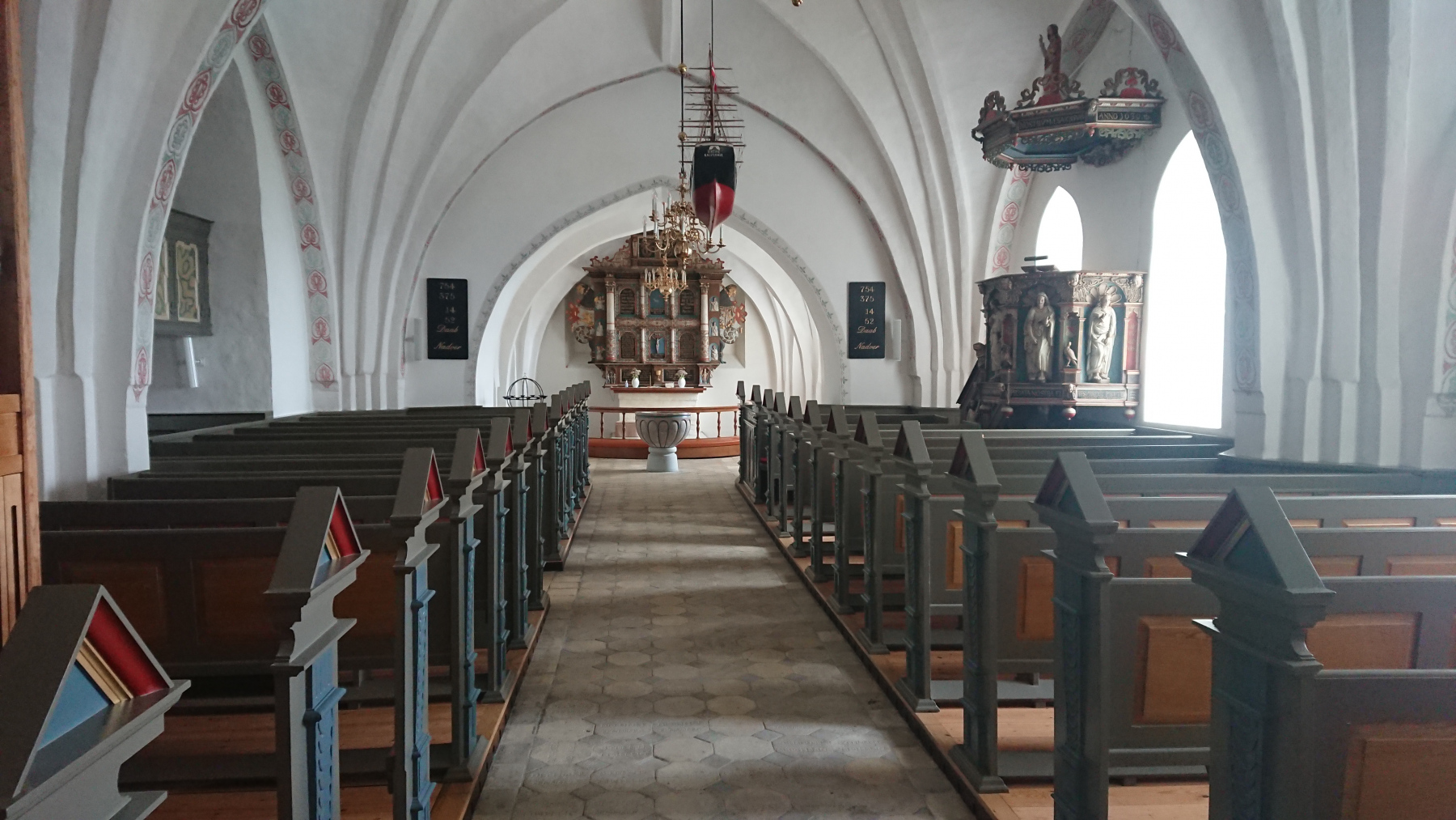 Wir schauen uns auch das Innere der Kirche an – echt schön – schlicht und dennoch beeindruckend. Und unter der Kirche in einer Gruft liegen die alten Gebeine vermutlich eines Bischhofs.