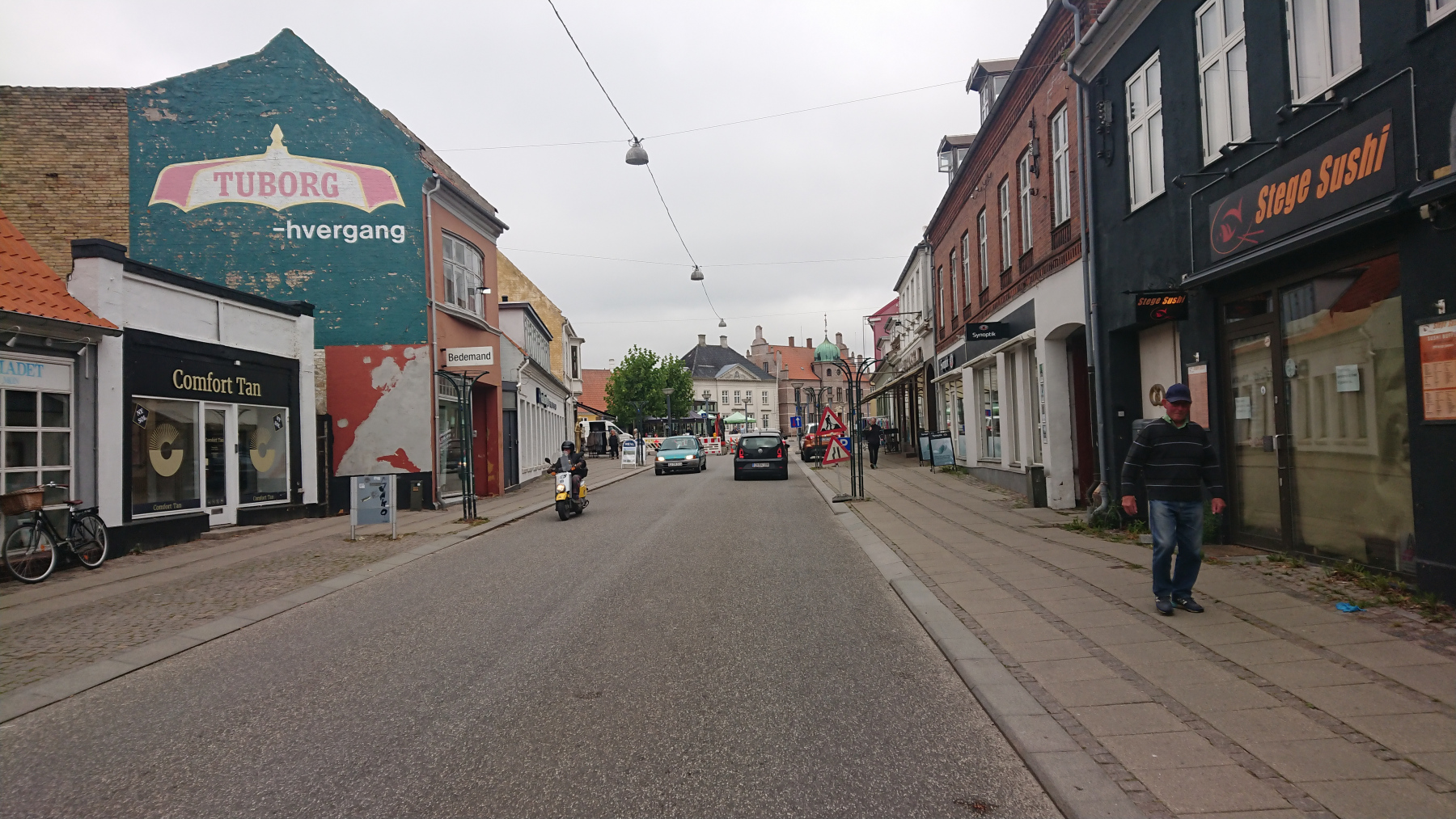 Wir haben nun Møn erreicht, und bis Møns Klint, der Kreidesteilküste sind es noch rund 31 km. Auf dem Weg dahin fahren wir durch Stege und an dem Hotel Stege Nor vorbei, wo wir später übernachten werden.