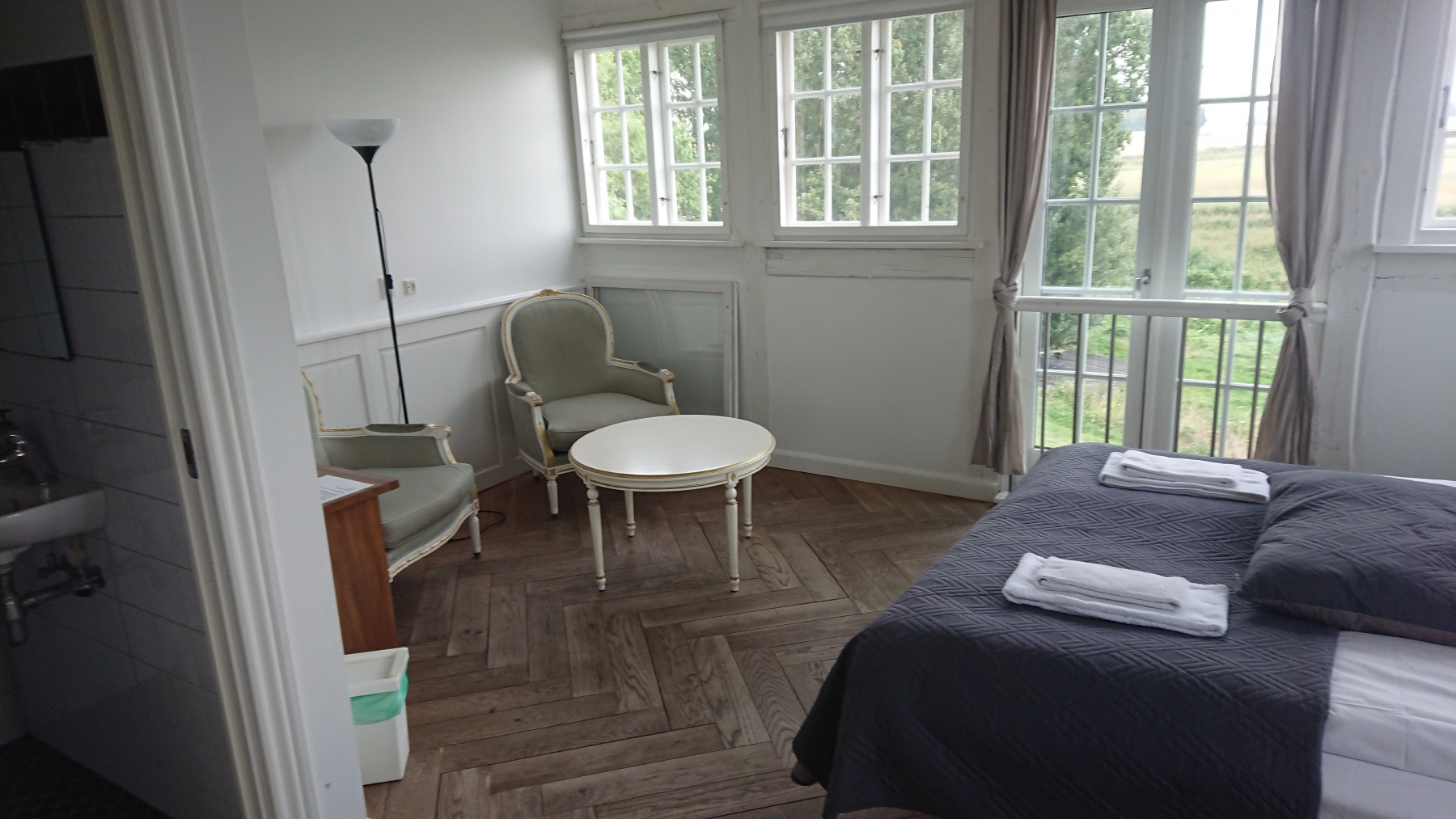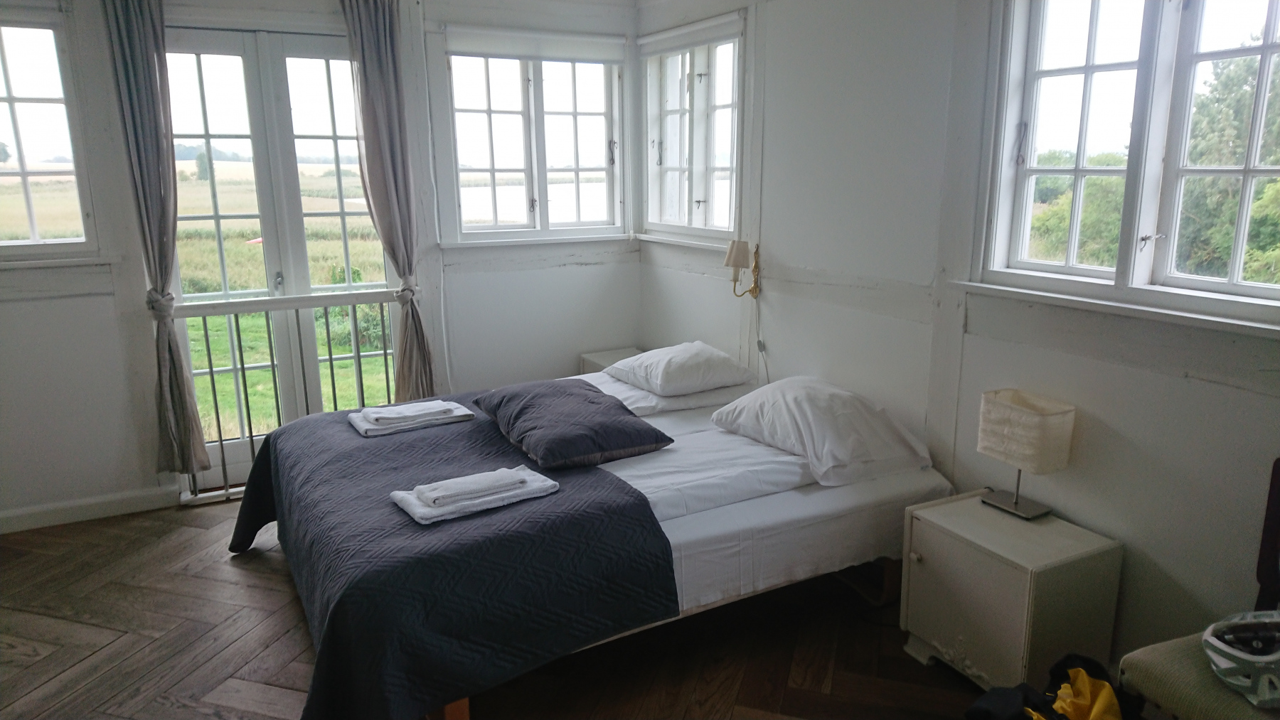 Und dann ist das Hotel Stege Nor schnell erreicht – Es ist eine komische Mischung aus Hotel und Paddel-Camp – aber es ist kein Personal vor Ort, der Schlüssel zum Zimmer steckt, die neuen Gästenamen stehen mit Zimmernummer auf einer Tafel. Uns soll es recht sein. Das Zimmer ist okay, das Bad ist wohl das kleinste der ganzen Tour, wir duschen fast in der Toilette, nach dem Duschen ist das ganze Bad erstmal nass. Wie aus den ausliegenden Beschreibungen zu ersehen, wurde dies aufgrund der geringen Deckenbelastbarkeit gemacht.