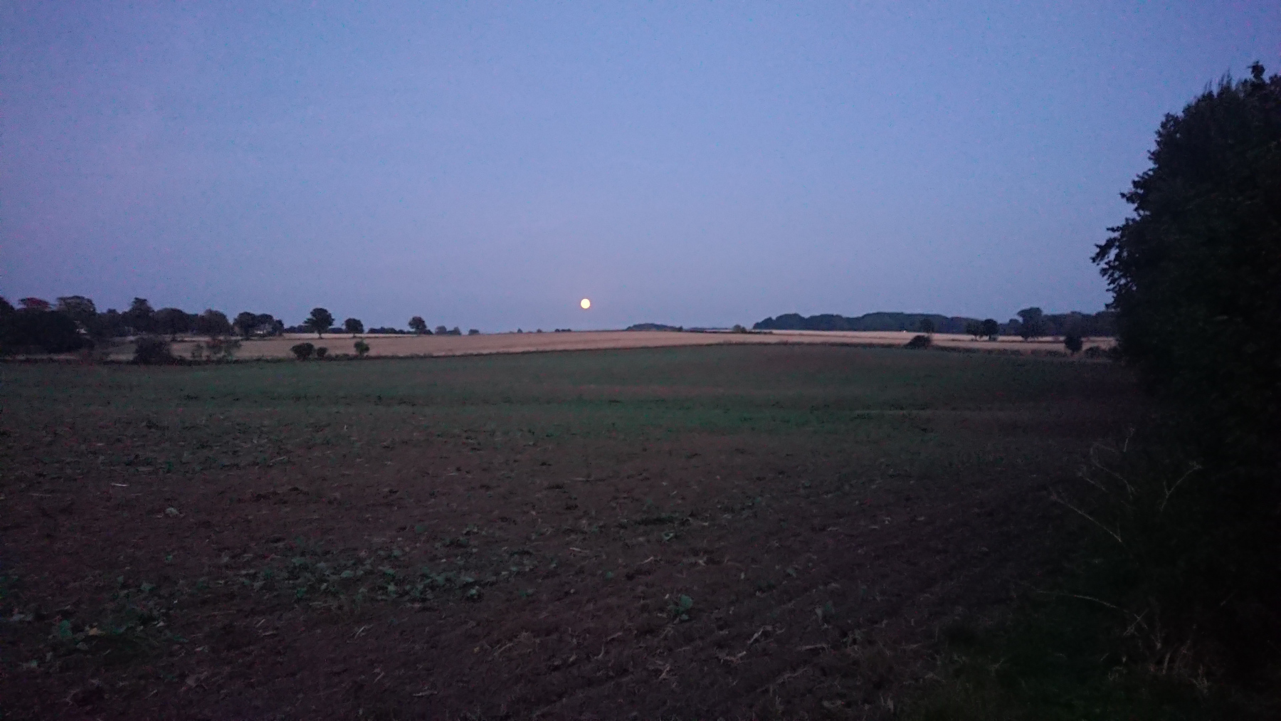 Spät am Abend verziehen sich dann auch endlich die Wolken und grau weicht anderen Farben. Sonnenuntergang und Mondaufgang fallen fast zusammen, wir brauchen uns nur um 180° zu drehen.