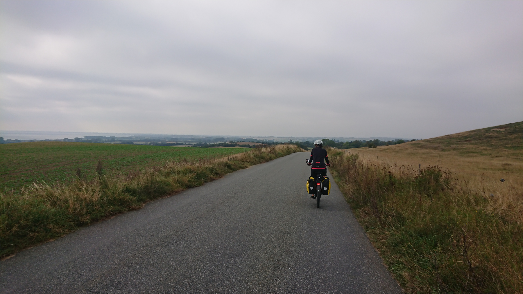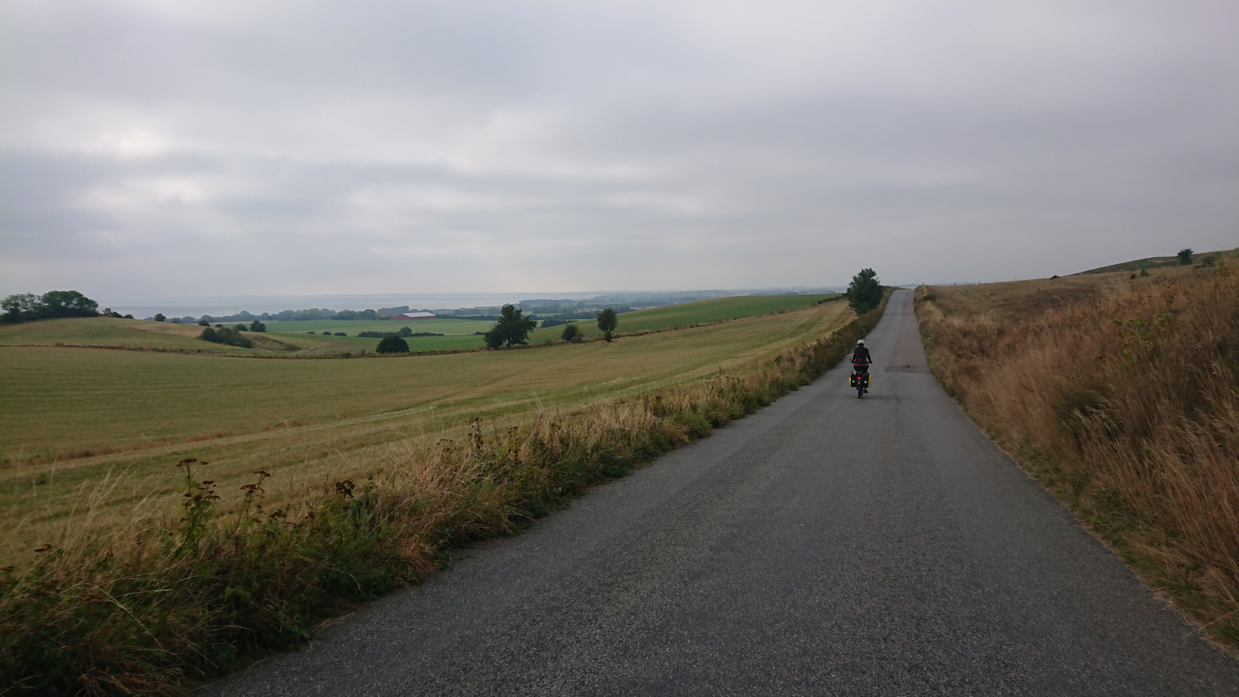 Wir sind wieder auf dem Ostseeküstenradweg und dem Radweg Berlin-Kopenhagen unterwegs. Es geht mal mehr mal weniger weit von der Küste entfernt nach Süd-Ost. Es geht auf kleinen Straßen und immer wieder geht es auf und ab. Leider ist die Sonne nicht zu sehen und alles ist grau in grau.