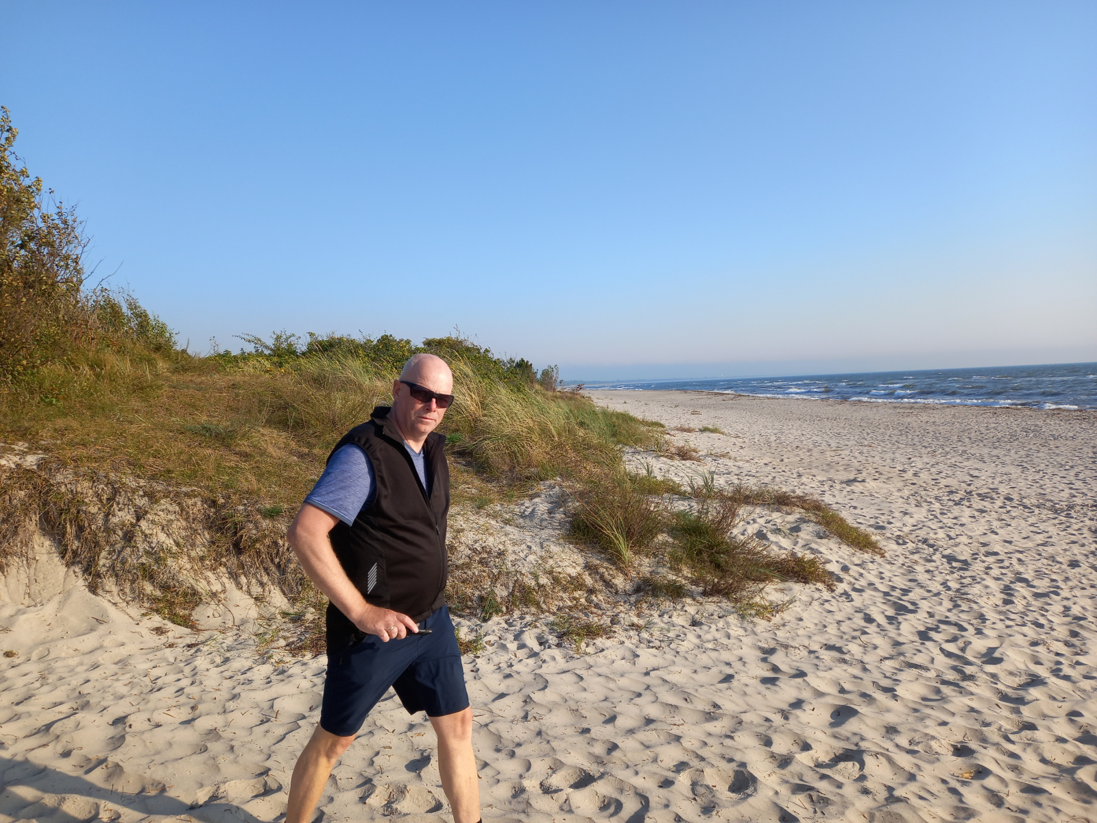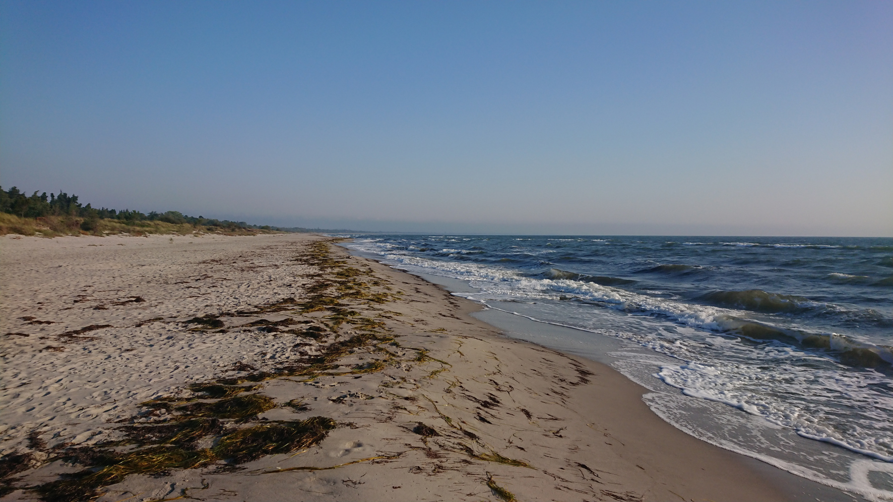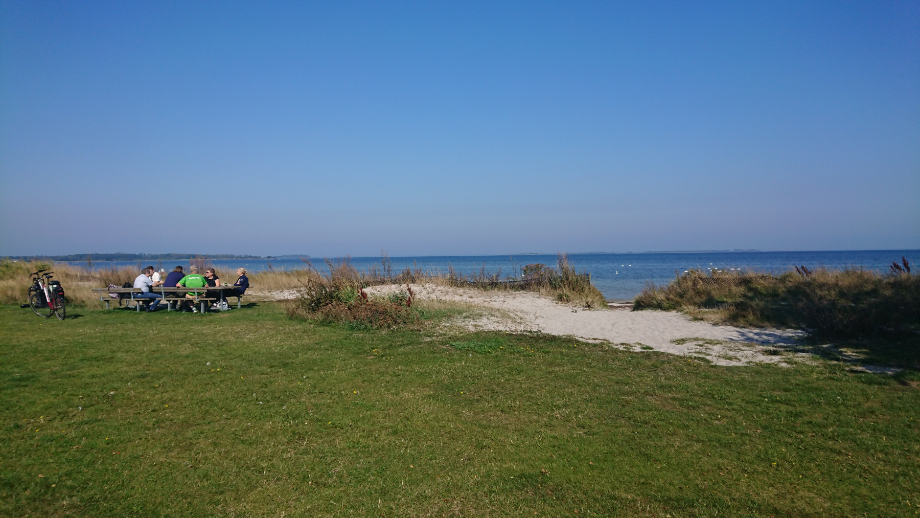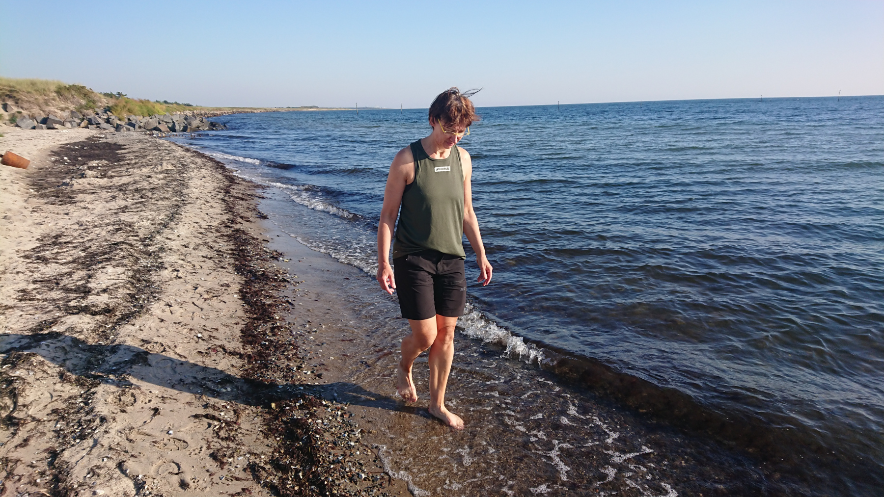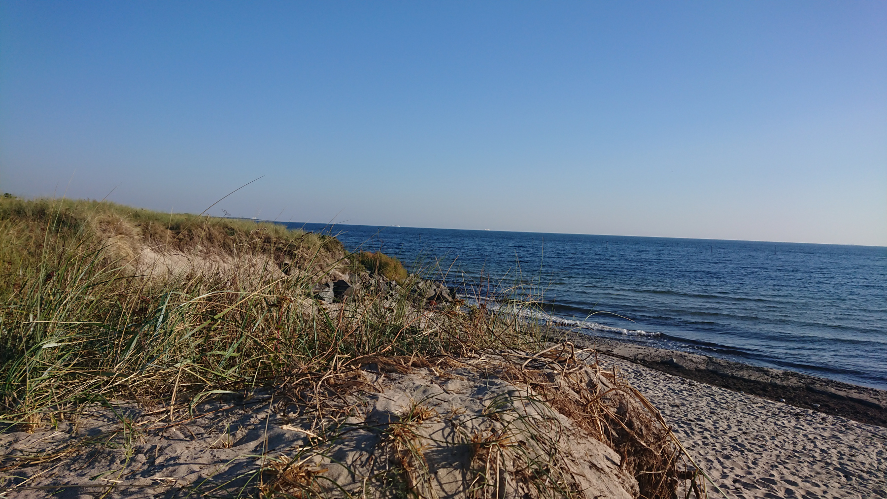 Es ist nun soweit, es geht Richtung Heimat. Mit jedem Tag und jedem km kommen wir wieder dichter nach Hause. Heute geht es noch mal schön über die Inseln Falster und Lolland. Ziel ist heute ein kleiner Ort in der Nähe von Rødby. Und wir werden heute mit richtig gutem Wetter belohnt. Die grauen Wolken sind endlich vorbei, die Sonne kommt raus. Noch vor dem Frühstück einmal an den Strand, die Sonne ist gerade aufgegangen.