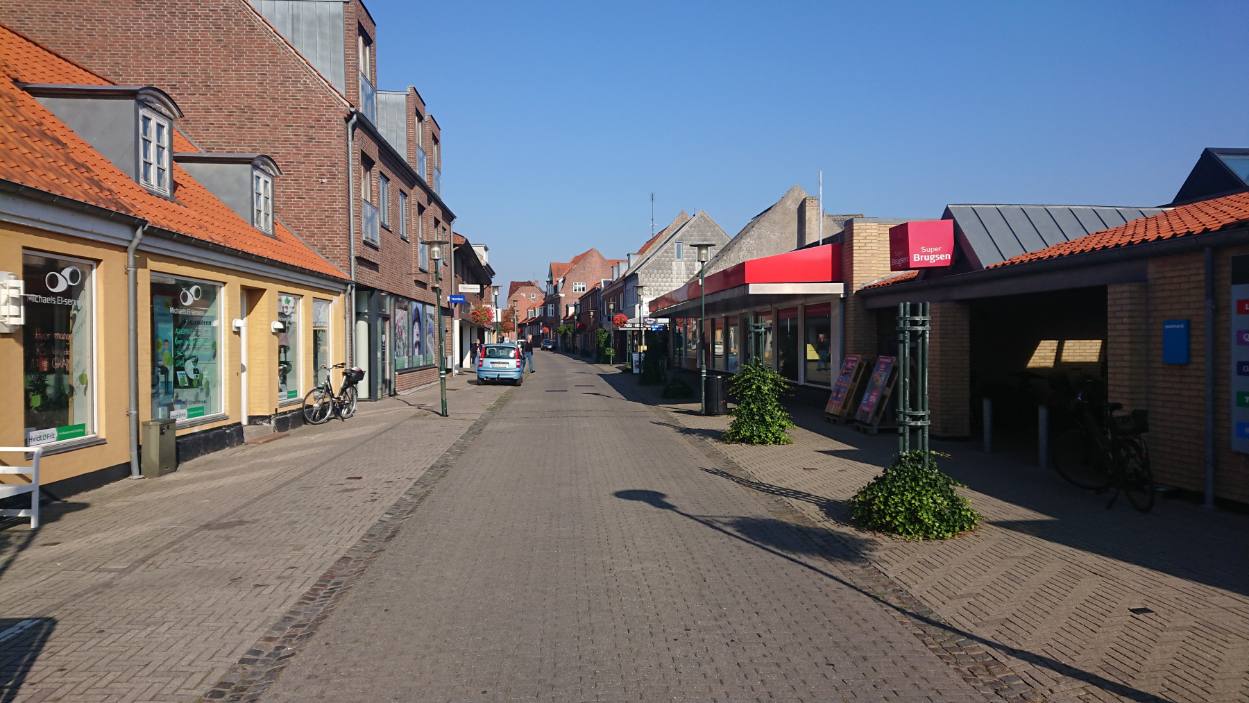 Und dann verlassen wir Marielyst; einmal durch den Ortskern mit seiner Flaniermeile – Um kurz nach 9 Uhr ist noch kaum ein Mensch hier auf den Beinen.