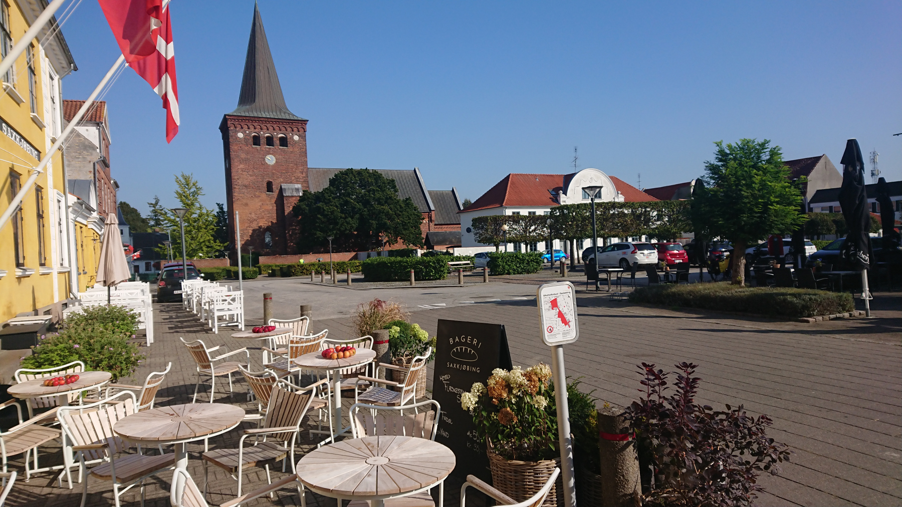 In Sakskøbing werden wir von einen Turm freundlich lächelnd begrüßt