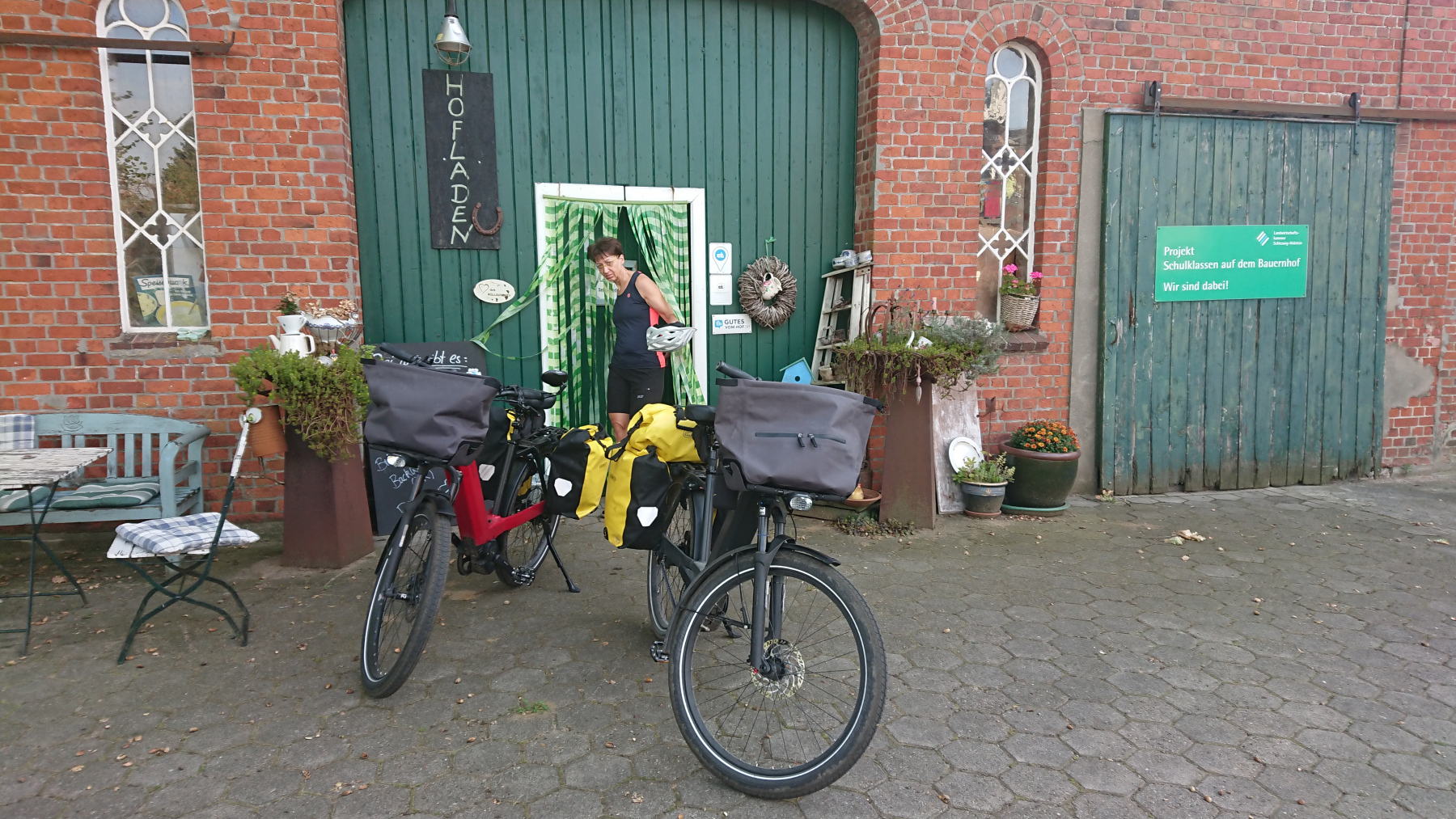 Kurz nach halb zehn – wir haben gut gefrühstückt, einen kleinen Plausch mit dem anderen Gast im “Kuhblick” gehabt – sind wir abfahrbereit. Heute geht es durch den Naturpark Aukrug über Hohenweststedt zum Nord-Ostsee-Kanal, dem wir dann ein Stück folgen werden. Von Rendsburg an geht es nach Norden Richtung Schleswig und unser heutiges Ziel ist das Örtchen Silberstedt. Es sind wieder etwas mehr als 90km geplant.