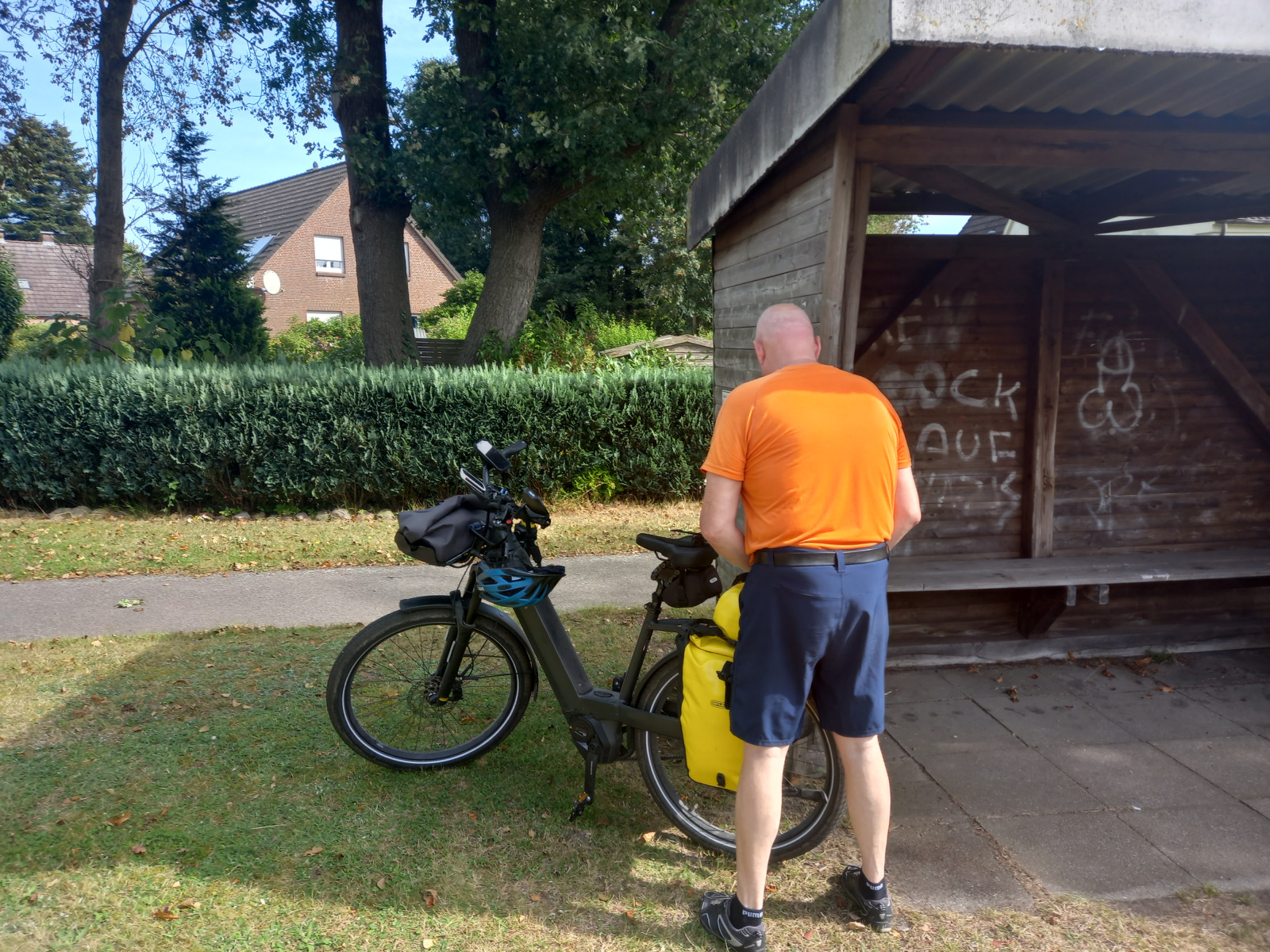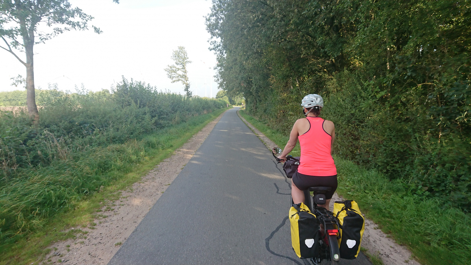 In Hohenweststedt können wir beim Bäcker ein wenig Kuchen kaufen, den wir dann bei einer Pause in Nienlanden bei km 41 essen werden. Es ist mittlerweile auch sehr warm geworden.