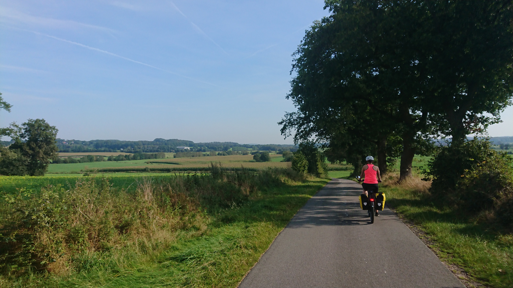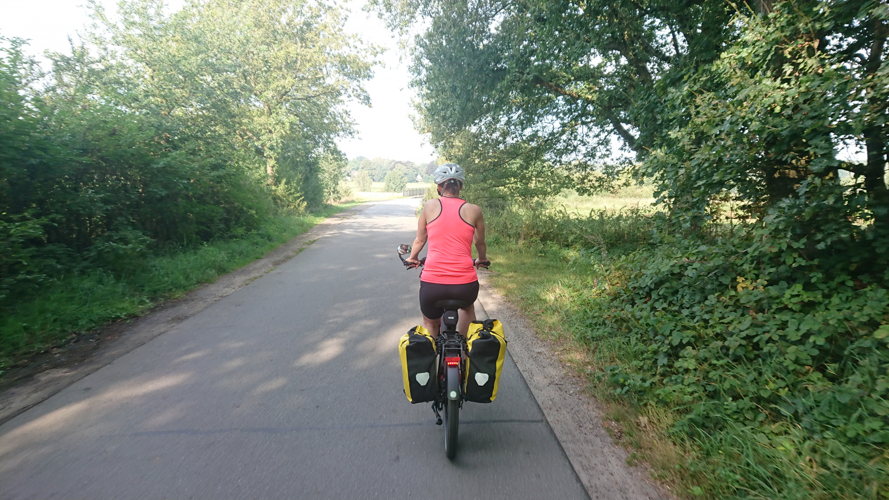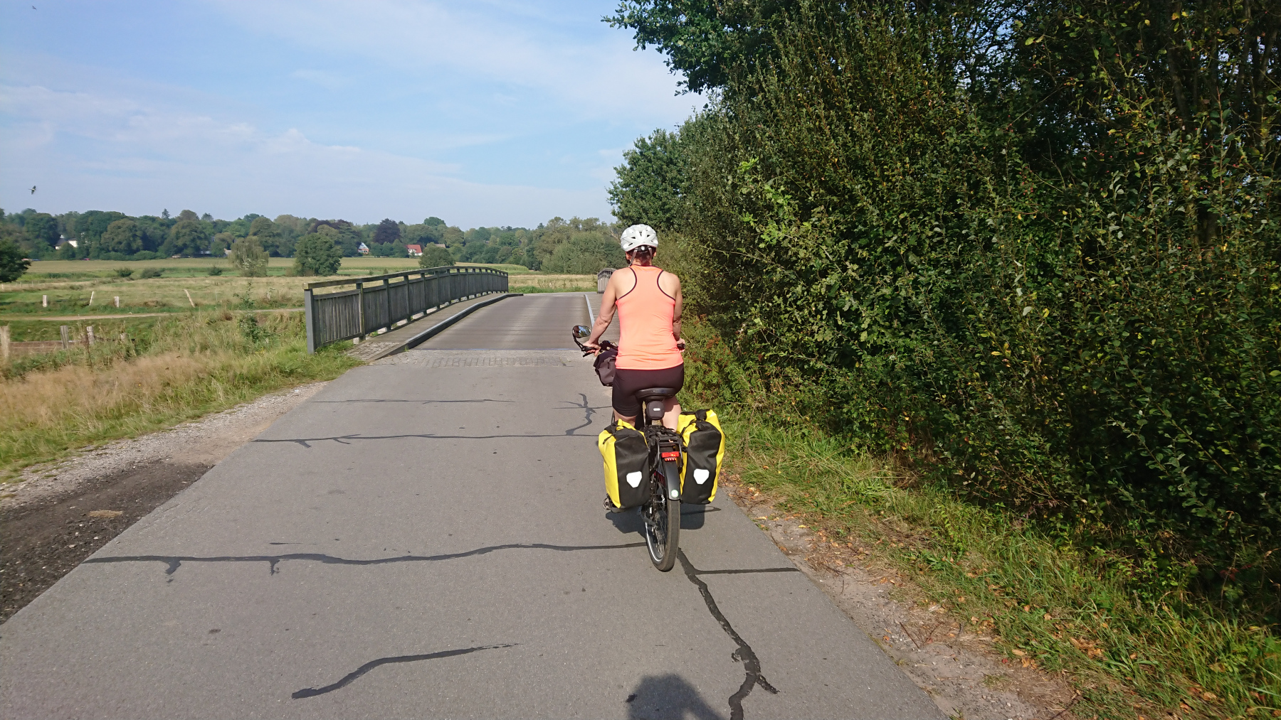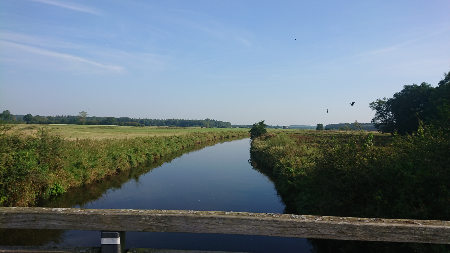 Kurz nach halb zehn – wir haben gut gefrühstückt, einen kleinen Plausch mit dem anderen Gast im „Kuhblick“ gehabt – sind wir abfahrbereit. Heute geht es durch den Naturpark Aukrug über Hohenweststedt zum Nord-Ostsee-Kanal, dem wir dann ein Stück folgen werden. Von Rendsburg an geht es nach Norden Richtung Schleswig und unser heutiges Ziel ist das Örtchen Silberstedt. Es sind wieder etwas mehr als 90km geplant.