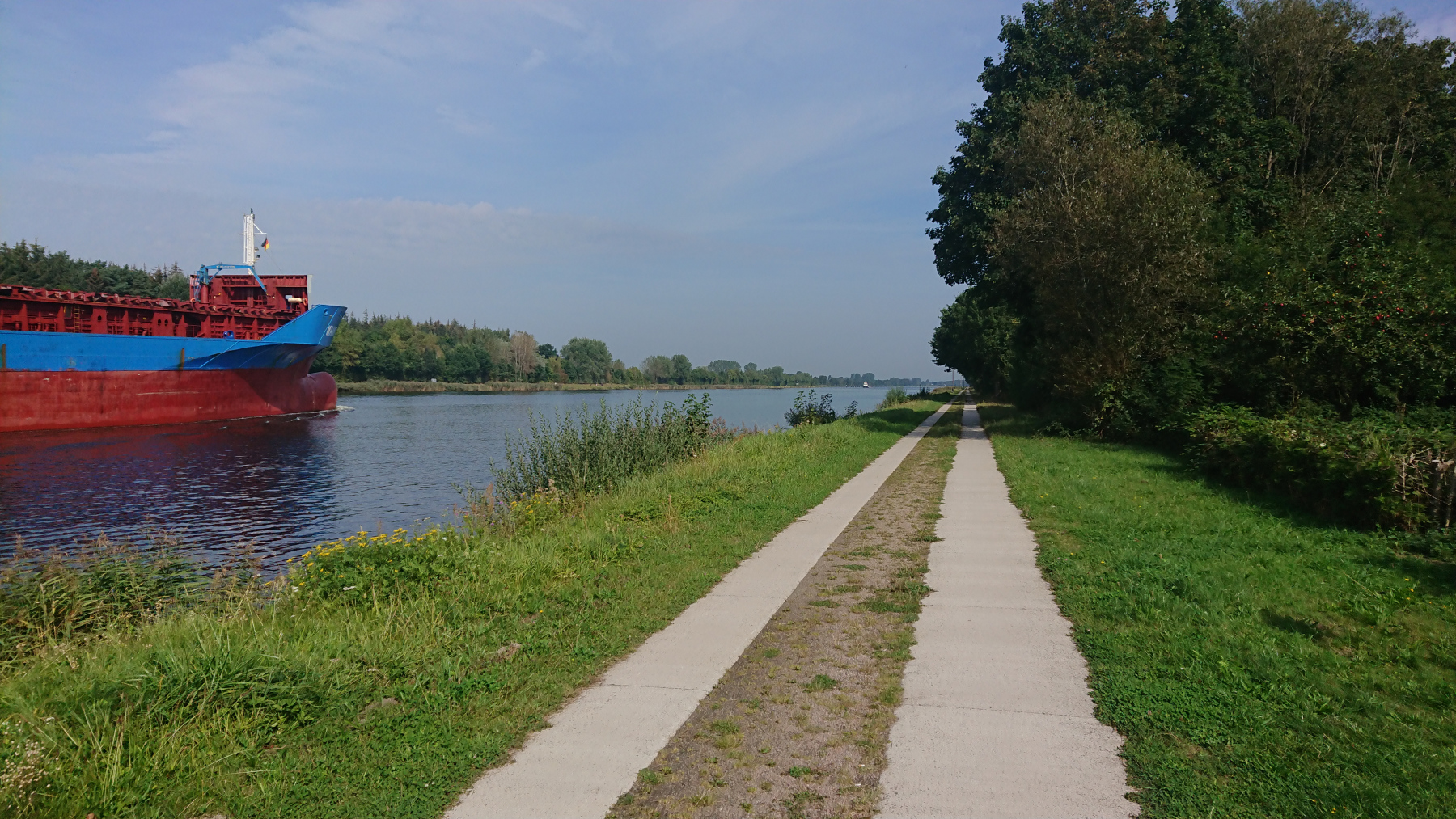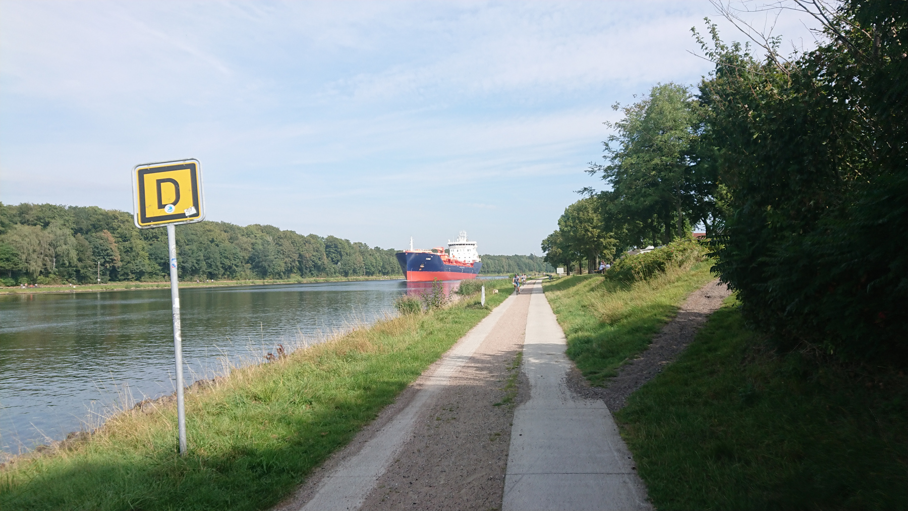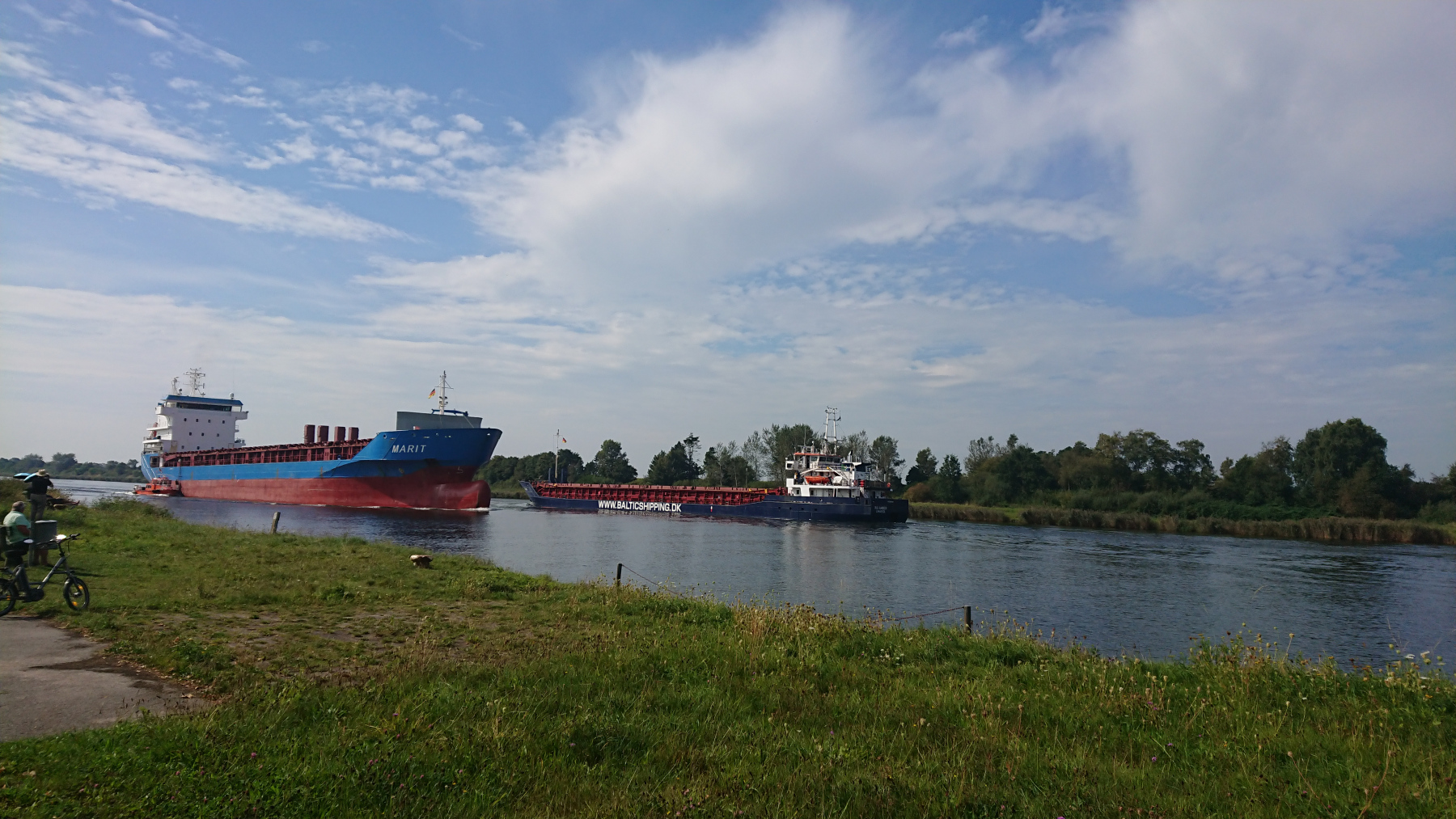 Danach erreichen wir den Nord-Ostsee-Kanal und folgen dem Verlauf bis Rendsburg. Einige Schiffe sind auf dem Kanal und zusätzlich scheint noch eine Regatta oder ein Ruderrennen stattzufinden.