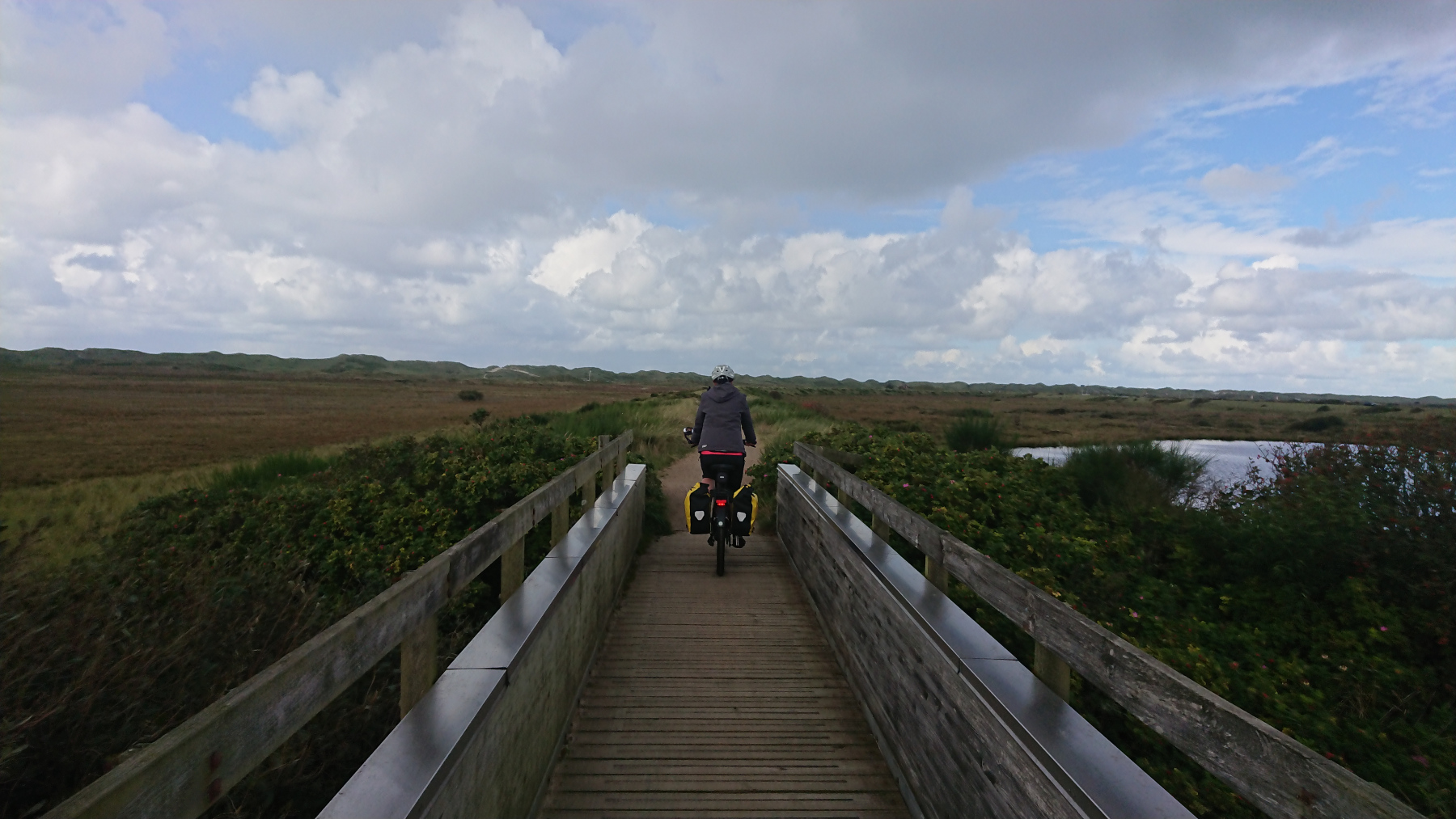 Nach dem Bad geht es denn auch schnell weiter. Lange am Strand geht nur, so lange die Sonne scheint. Sind Wolken da ist es schnell wieder kühl. Und die Wolken werden wieder dirchter. Bis Hvide Sande werden wir noch von zwei kurzen Schauern eingeholt.
