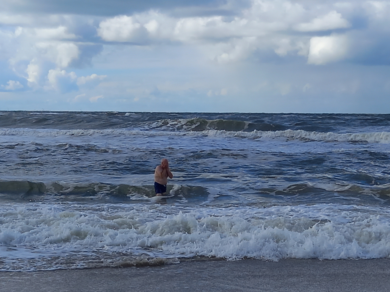 Und dann ist es so weit, wir erreichen Nymindegab Strand, die Sonne kommt für eine halbe Stunde raus und so wird Ziel Nr.1 „Baden in der Nordsee“ umgesetzt. Die Luft ist kälter als das Wasser, die Wellen angenehm groß also rein ins Nass.
