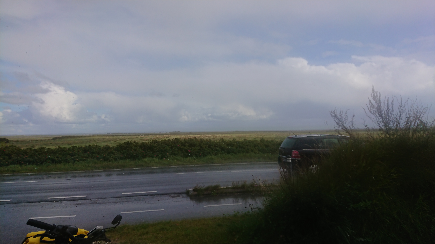 Varde ist nach rund 25km erreicht, und kurz danach sehen wir wieder die ersten dunklen Wolken am Himmel und in der Ferne auch, wie der Regen fällt.